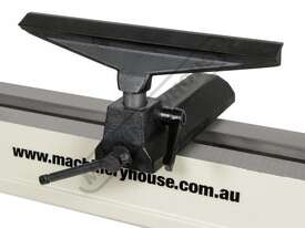 The lathe comes complete with an outboard tool rest extension which is used to get the bowl rest into the best position when turning with the head rotated. The head and tailstock both have 2 morse tapers and the drive spindle thread is a common 1" x 10tpi. Supplied as standard with the machine is a 4 prong drive centre, revolving tailstock centre & faceplate.