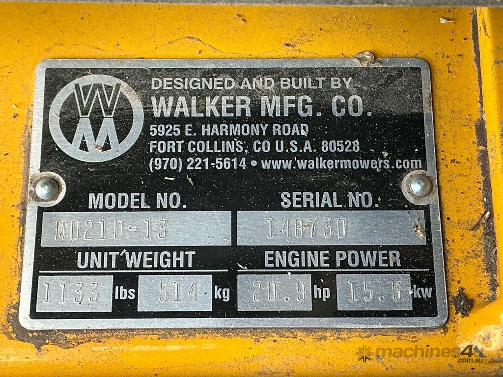 No C/P,Walker,MD21D-13,Ride On Mower,Engine #: 4HN4240,3 Cyl,Diesel,Odometer not visible,417 (Hrs. Showing on Hour meter),Colour: Yellow,Rego. No: NP(1MG5SB), Unregistered,Serial No: 148730,Sold with No Plates,Key No: 86