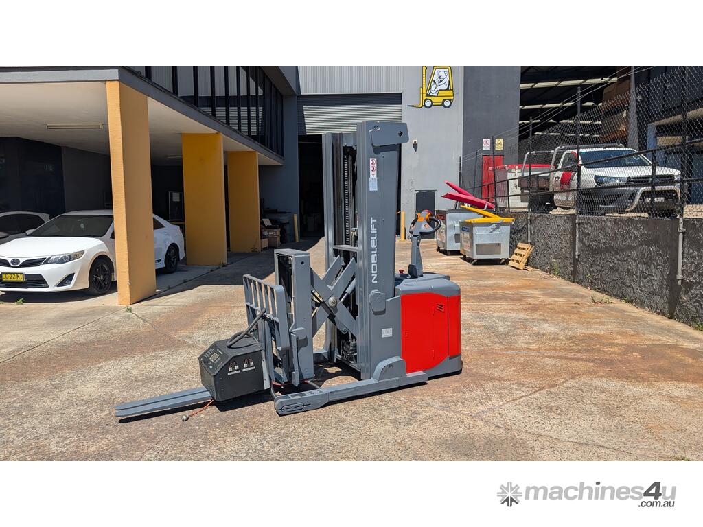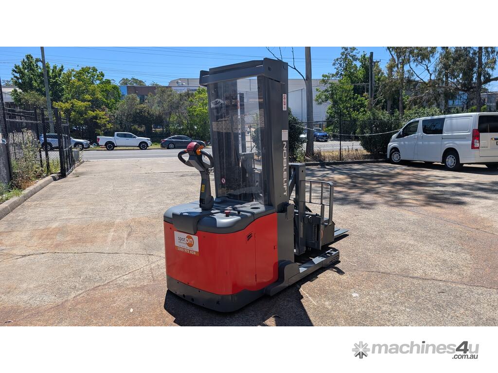 For Sale: 2016 Noblelift Walkie Reach Forklift – a compact, high-performing electric reach truck with under 200 hours of use, offering exceptional value and reliability. Powered by a lithium-ion battery and equipped with a 4.6m triplex mast and side shift, this machine is ideal for warehouses, retail backrooms, and space-restricted environments requiring high lift and precision handling.