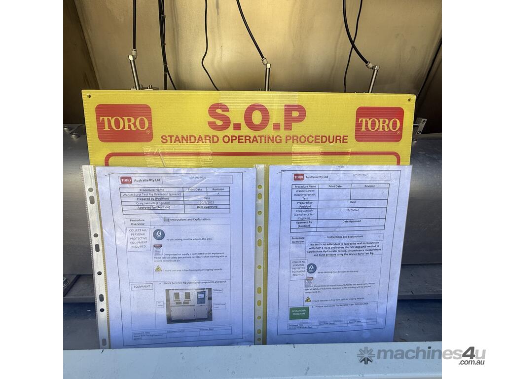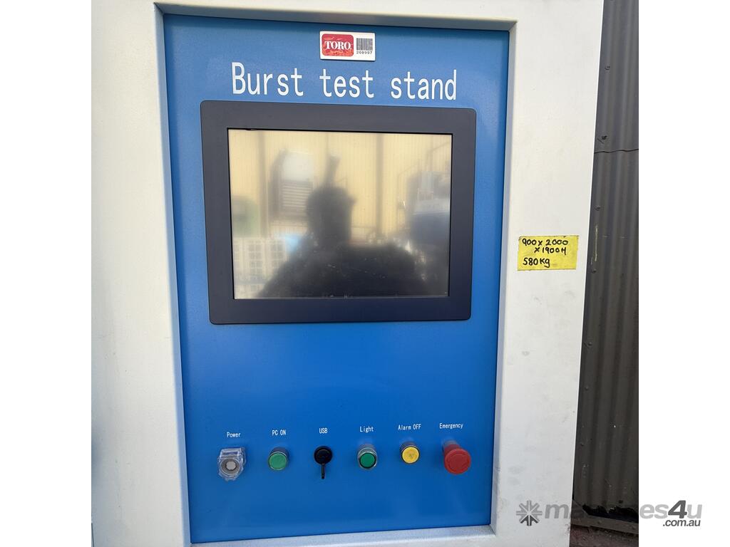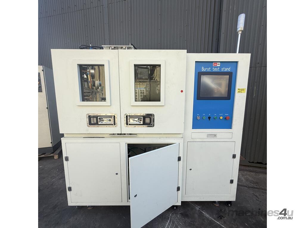 Function: The stand is designed to conduct hydrostatic burst tests, a type of proof pressure test to ensure components can handle internal pressures beyond their normal operating limits.
