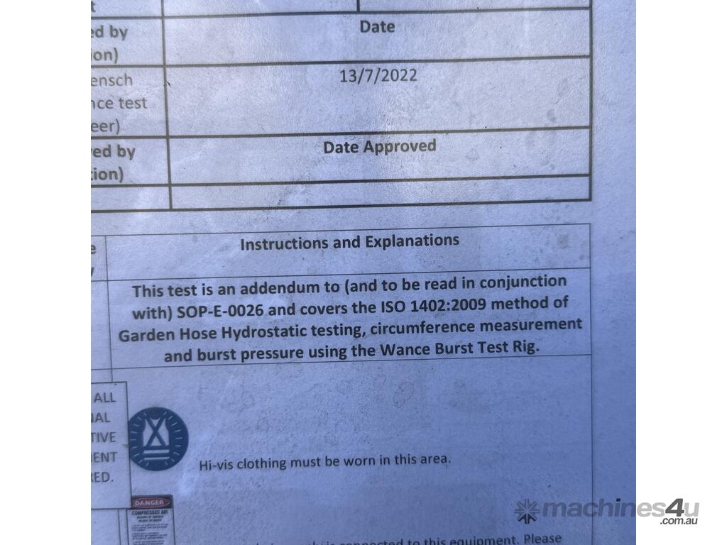 Wance BTM506B-RR Garden Hose Hydrostatic Burst Test stand Rig 5MPa 1.5kW AC 415V