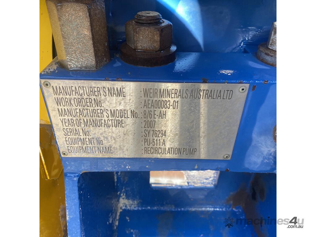 Weir Warman 8/6 E AH Slurry Pump Recirculation 110kW Motor F6058HE1A49 6VC 200x150mm