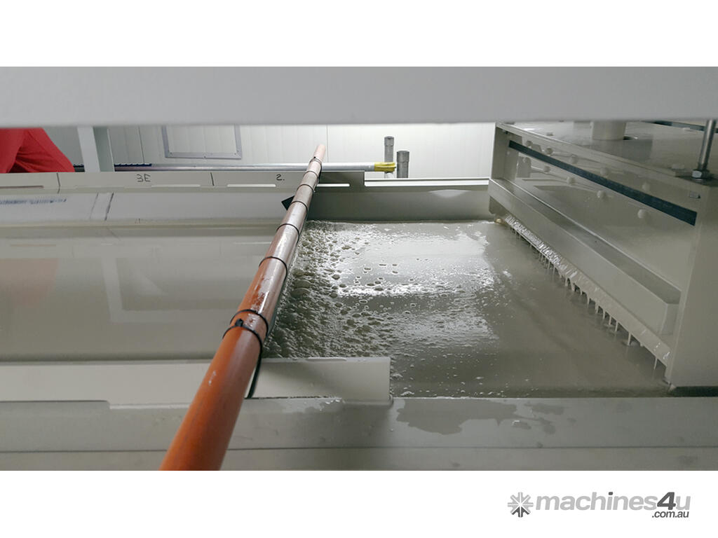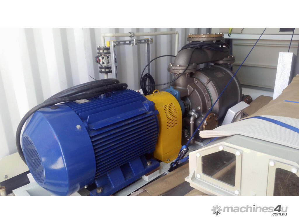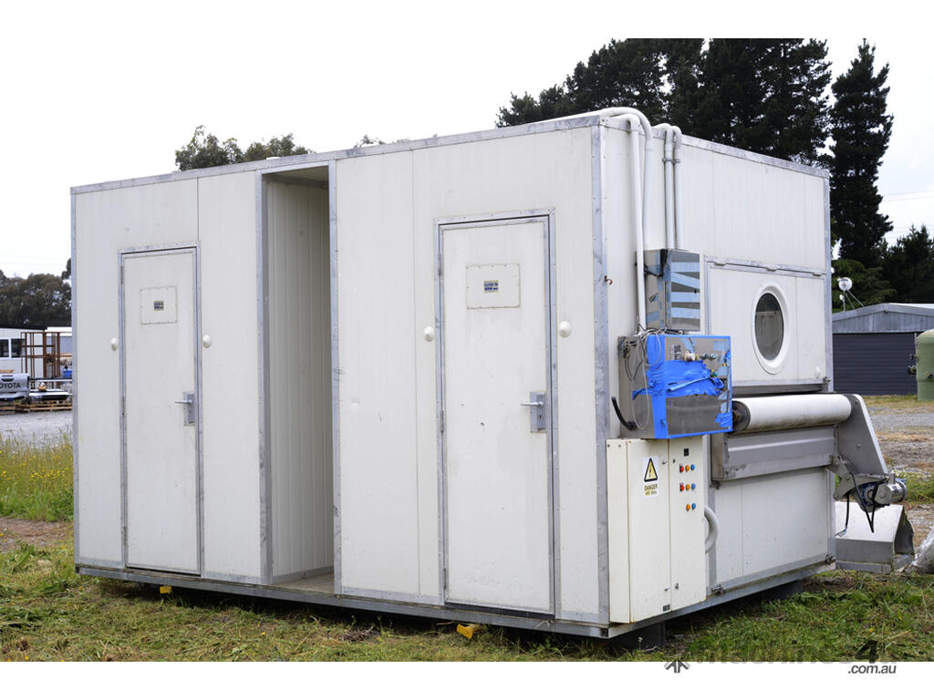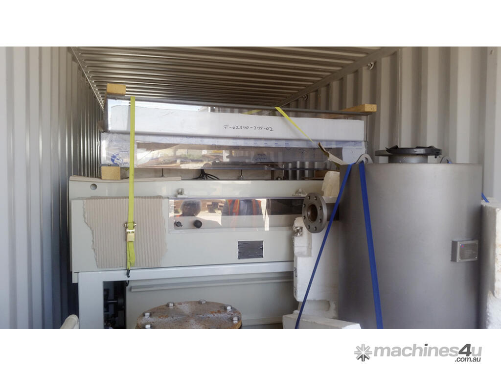The primary plant unit is a 6.5-meter BMS Vacuum Filter Table which is currently temporarily stored in a 40ft container. It is in excellent, as-new clean condition and has been used only in pilot trials on liquid dairy flocculant protein (DAF) extraction, with less than 100 operational hours. The Filter Table is a complete operational unit with its Ducting, including the 15 kw, 400-volt Motor and liquid ring Vacuum Pump with the initial vacuum separator cylinder and water piping, plus one 3,356ltr Filtration Separation Tank. Included are two 7.5-micron filter belt cloths. The table is supported by 1.5-meter steel legs for underneath access. Note, that the table is not equipped with a liquid wash option as noted in the schematic, as this did not apply to the DAF process.