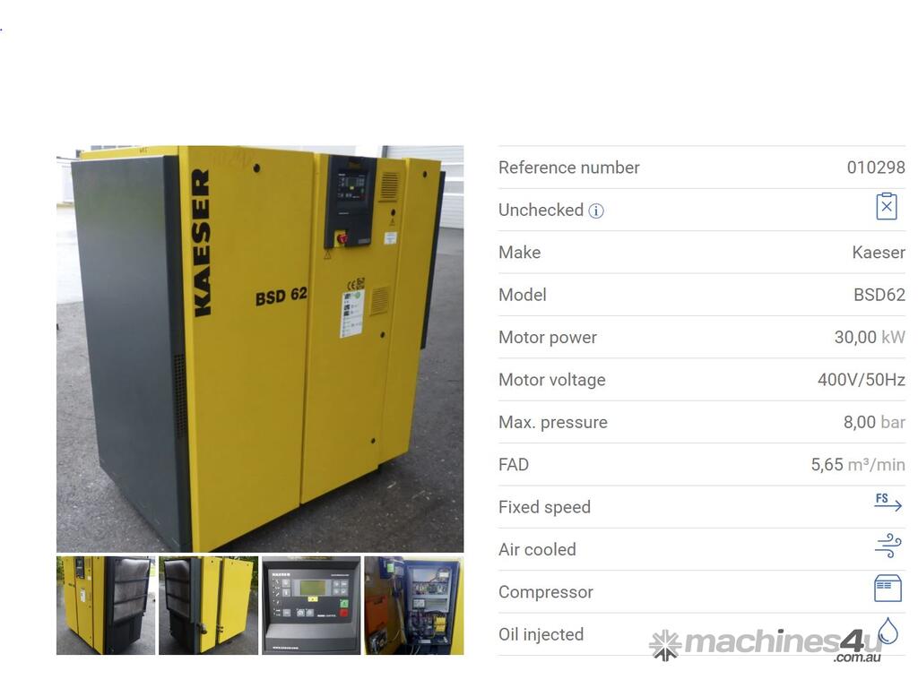 (iii) A Kaeser 62T compressor, specified  8 bar (116 psi) pressure. The usage hours are unknown as it is not currently accessible in the packed container.