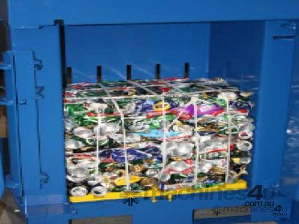 Bales a variety of waste products including plastic bottles, drinks cans, paint tins, cardboard & plastic