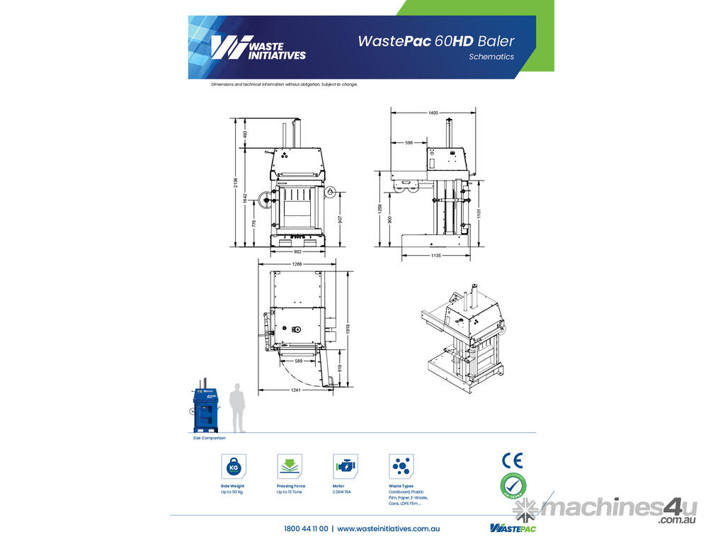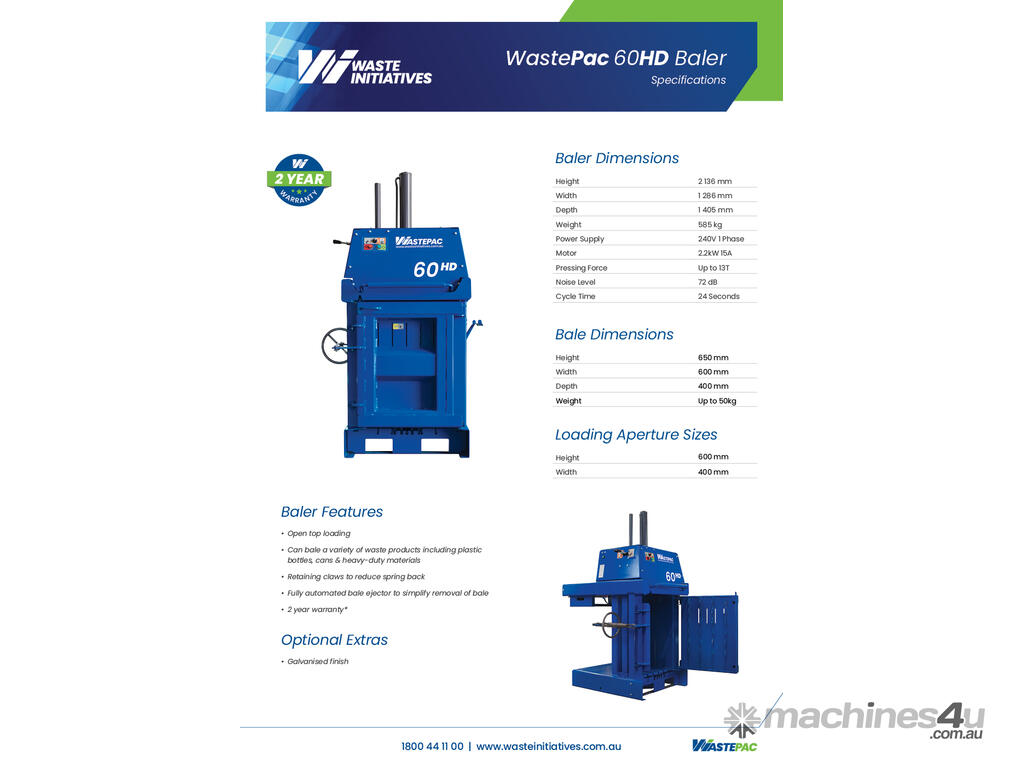 WastePac 60 Heavy Duty Can Baler is one of our sturdiest, most versatile balers that can handle a range of materials in a variety of shapes and sizes. There isn’t much this premium baler can’t do.