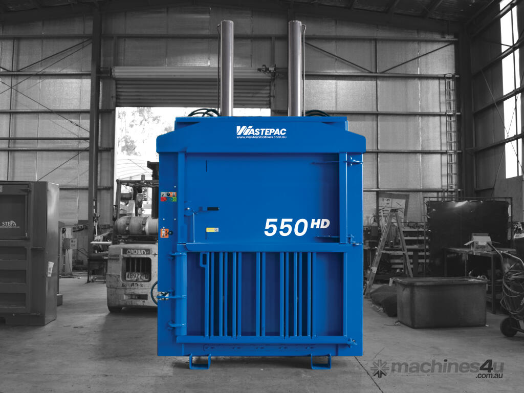 WastePac 550 Heavy Duty Baler boasts the highest capacity of the WastePac range of vertical balers. It’s ideally suited for heavy-duty applications where optimum bale density is required and especially valuable for high-resistance bale materials such as baling tyres and tough plastics like HDPE and PET.