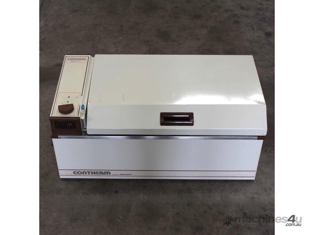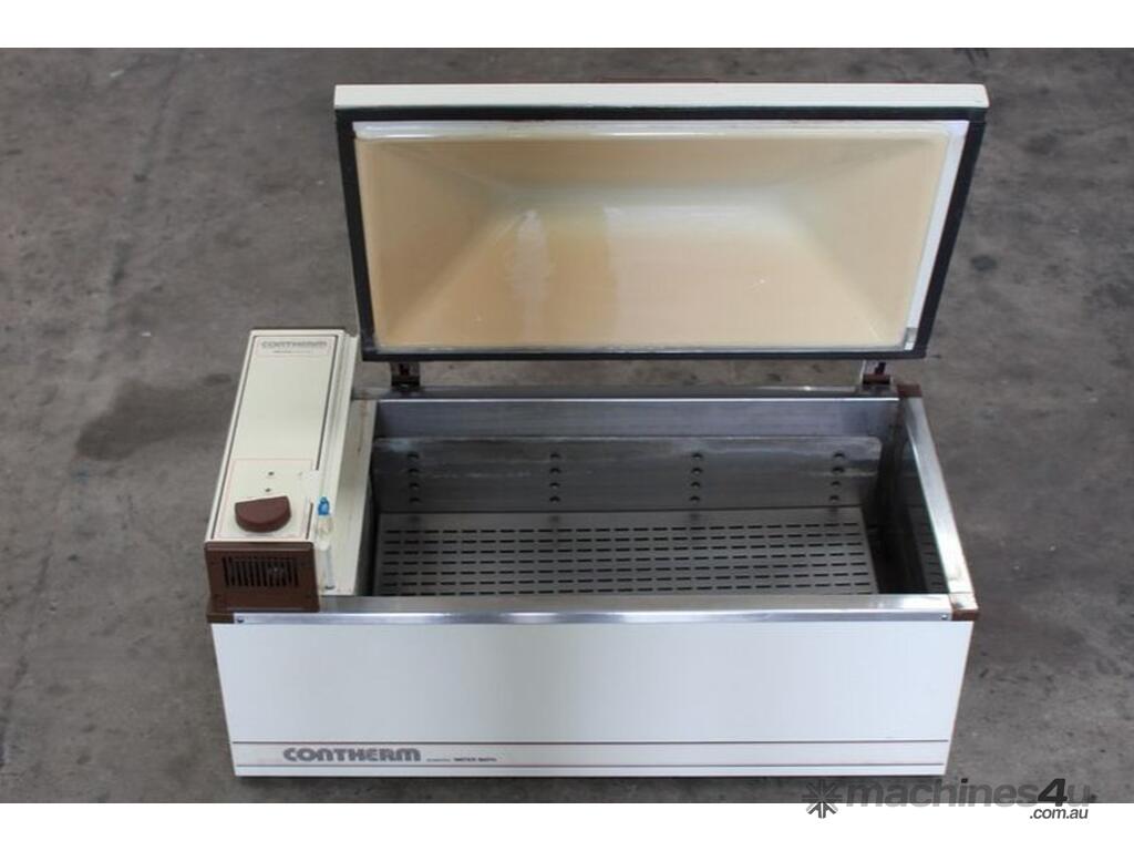 Water Bath, "Contherm", capcity 30L, with internal dimensions of 550mm x 300mm x 200mm deep, adjustable depth tray, complete with heater and a max temp of 70 degrees, hinged lid, single phase.