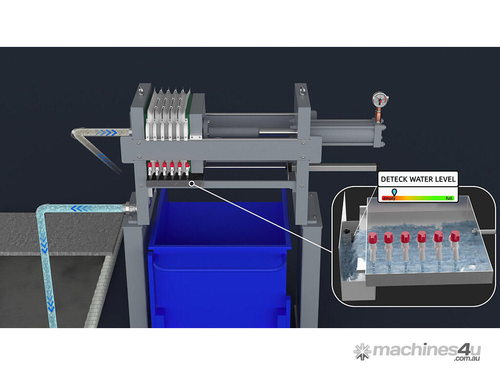 A combination of air pressure and gravity helps to separate mud from the water with the assistance of dossing flocculants into the tank. This helps the mud to fall to the bottom of the tank where it is then passed out into the filter press for further processing. The clean water is then taken out from the top to the relief valve where it can be used to service your factory needs.