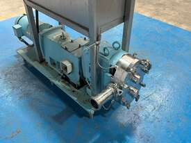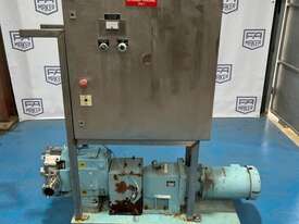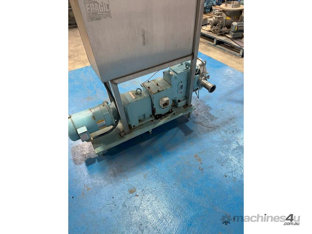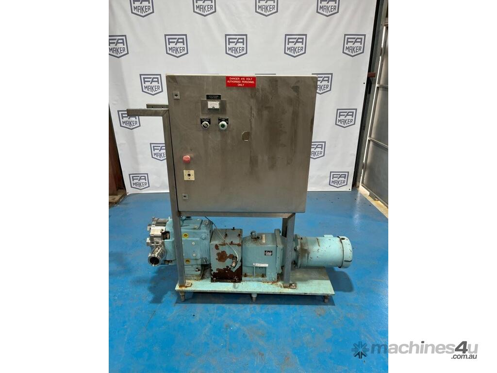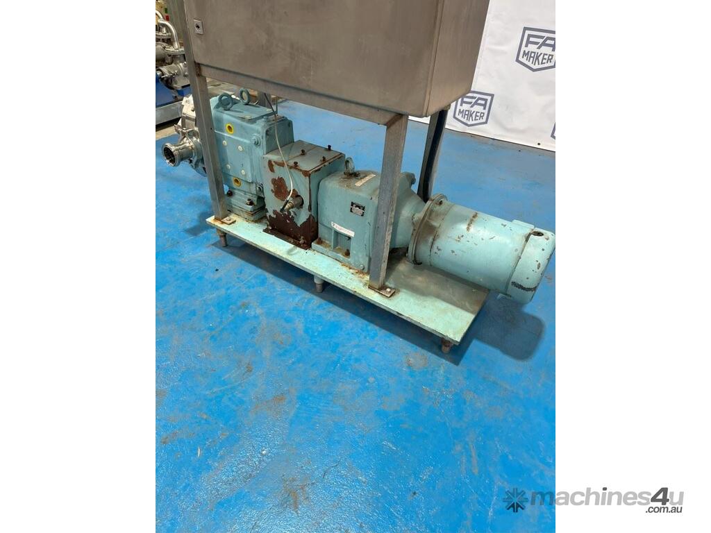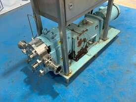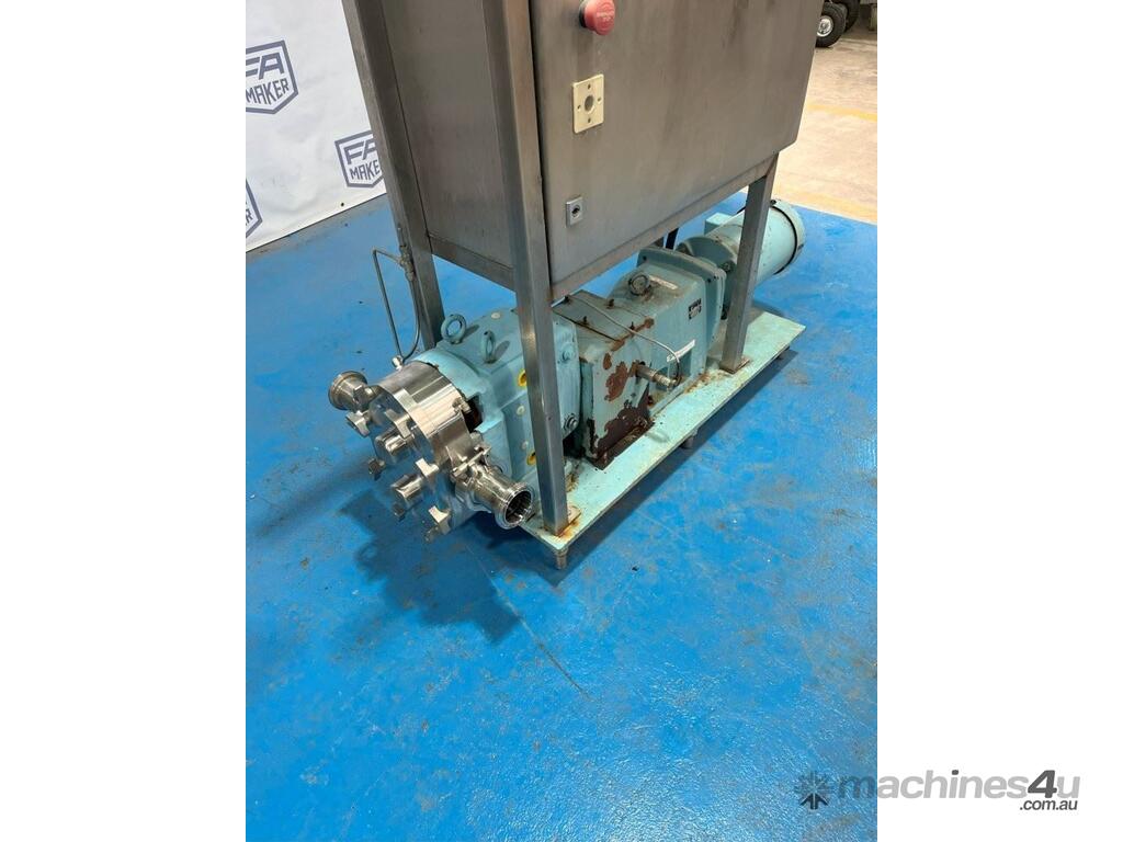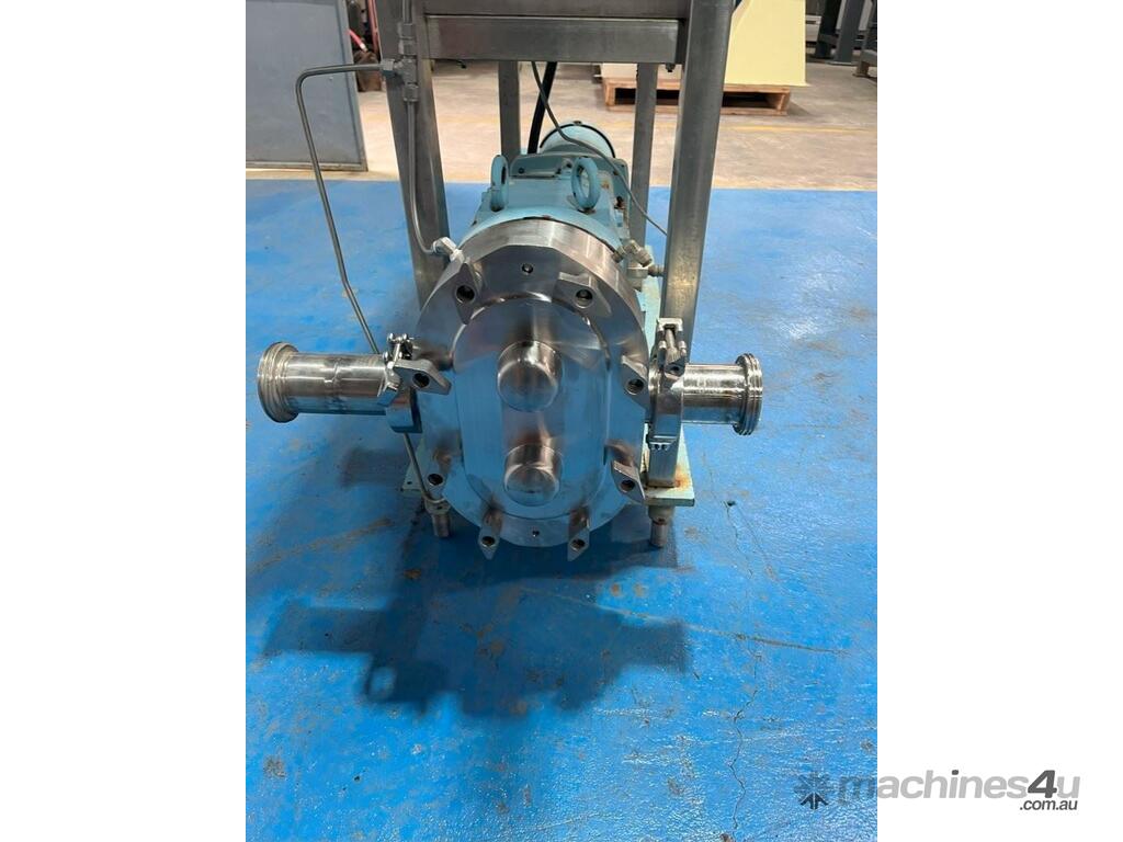 Waukesha Lobe Pump - Model 060 3 Phase, 415V, 2.2kW with VFD mounted to frame. Stainless steel positive displacement lobe pump. Suction / Discharge: 2.5 Inch Approximate flow rate (tested with water): 0 - 24 l/min or 0 - 1,440 l/hr Double mechanical seal with flush. Unit runs.