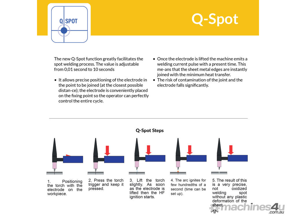 With so many features , including Pulse Tig frequency adjustment up to 2500HZ allowing it to weld very thin materials, Synergic Pulse which is automatically altered when the welding current is adjusted, Dynamic arc, Qspot and multitack making it possible to reduce heat whilst joining two light gauge sheets. Every Weco machine comes with a three year warranty.
