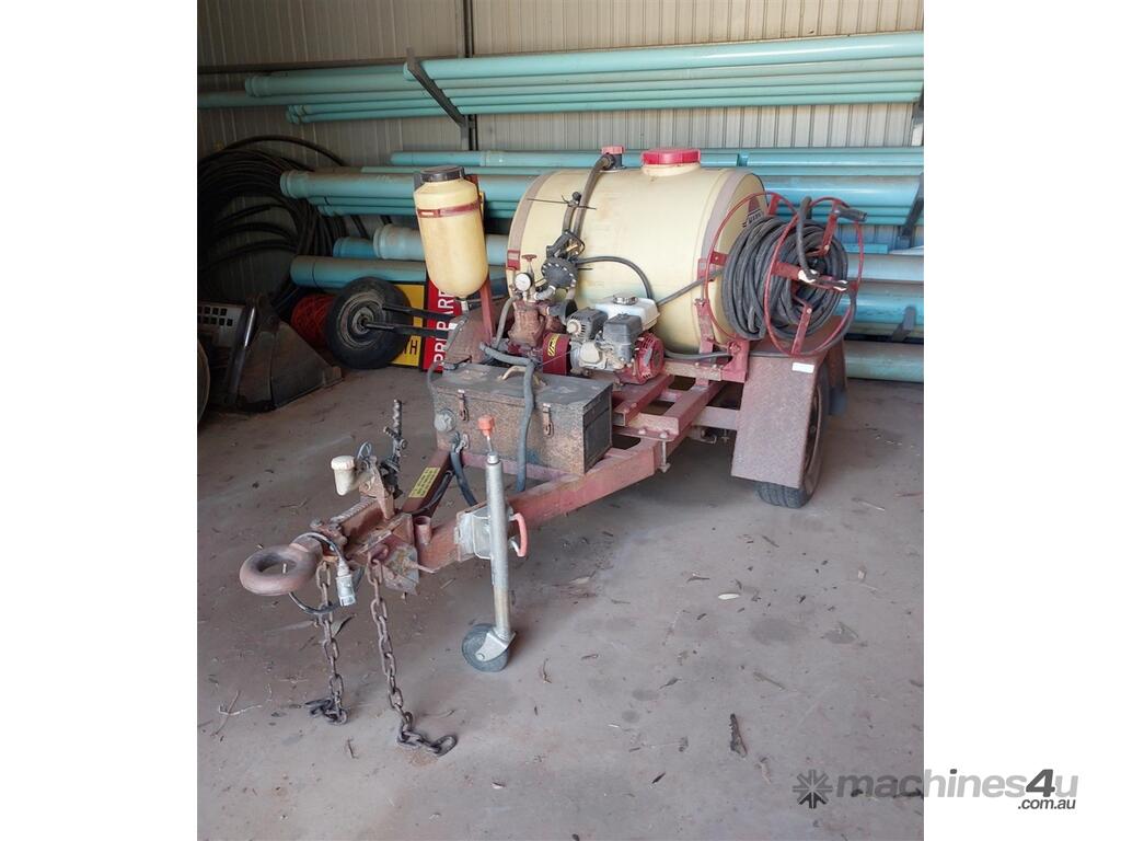 Weed Spray Unit Trailer -Silvan Spray Unit with Honda Engine - Hardi Tank , Hose Reel with Lance and Boom Sprays -75 mm Ring Tow Hitch Coupling ,Hydraulic Overide Brakes - Trailer Tyres Worn ,Pressure Gauge Cover has Hole , Hose Reel Slight Wear -Sold as is --Previous Registration Number TQL- 513 -Sold Unregistered -No Plates ( Buyer to Arrange Uplift and Removal from Port Augusta Depot )