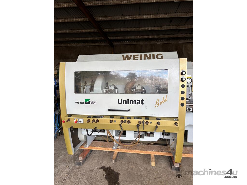 Weinig Gold Moulder, 6 head (5 + 1 has 2 outside side heads not your normal configuration) through feed moulder with dust extraction spider and 1 set of tooling, handbooks and spanners, in very good condition, available now, can be viewed by arrangement