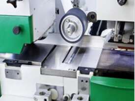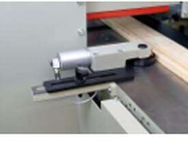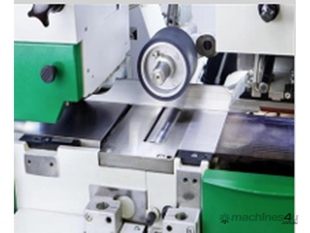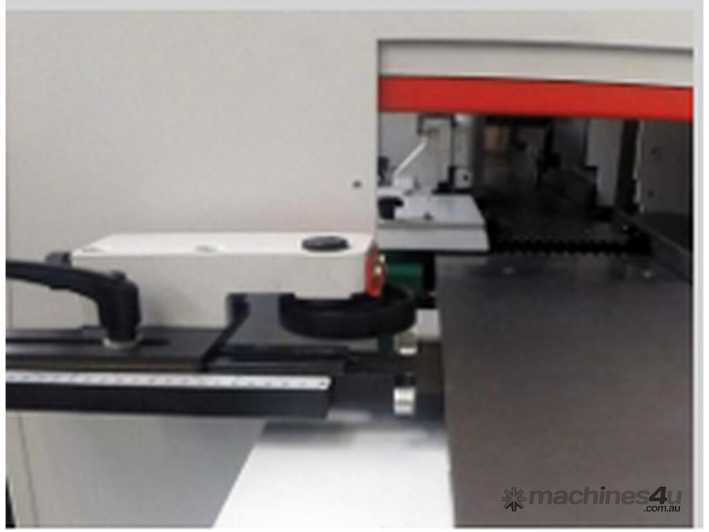 Guiding fence left manually height adjustable for precise guidance of workpieces below top spindle