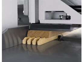 Back pressure system - optimized workpiece extraction when the feed is pushed to eliminate gaps