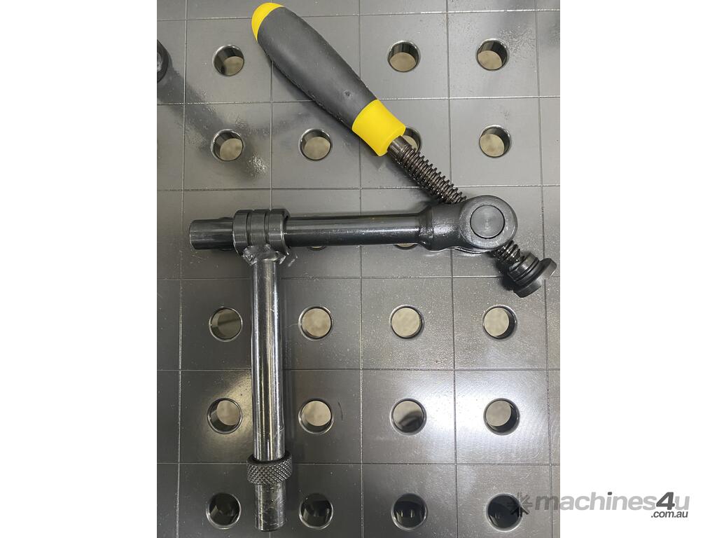 Pipe Clamp Universal, with swiveling Arbor enables flexible clamping at a + / – 42 degree angle. This Pipe Clamp combines the advantages of conventional 45° or 90° clamps. It can be used at an angle as well as straight, resulting in additional clamping options and a more variable clamping range.