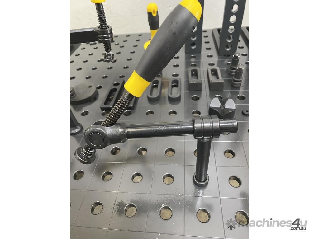 The horizontal round tube with a length of 150 mm is fully adjustable and creates, combined with the swiveling arbor, a variable clamping range. The length of the vertical pipe is 150 mm.