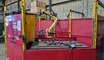 Lincoln Vee System Fanuc Arc Mate 120i 10L, 6 axis specification with 10kg payload capacity, R-J3C controller 6-axis control B-Cabinet, Remote type ArcLink Interface for Lincoln Power Wave, Lincoln Power Wave 455M STT Welder with water cooled torch. 2 Tables 1M X 2M with automatic Torch Reamer....