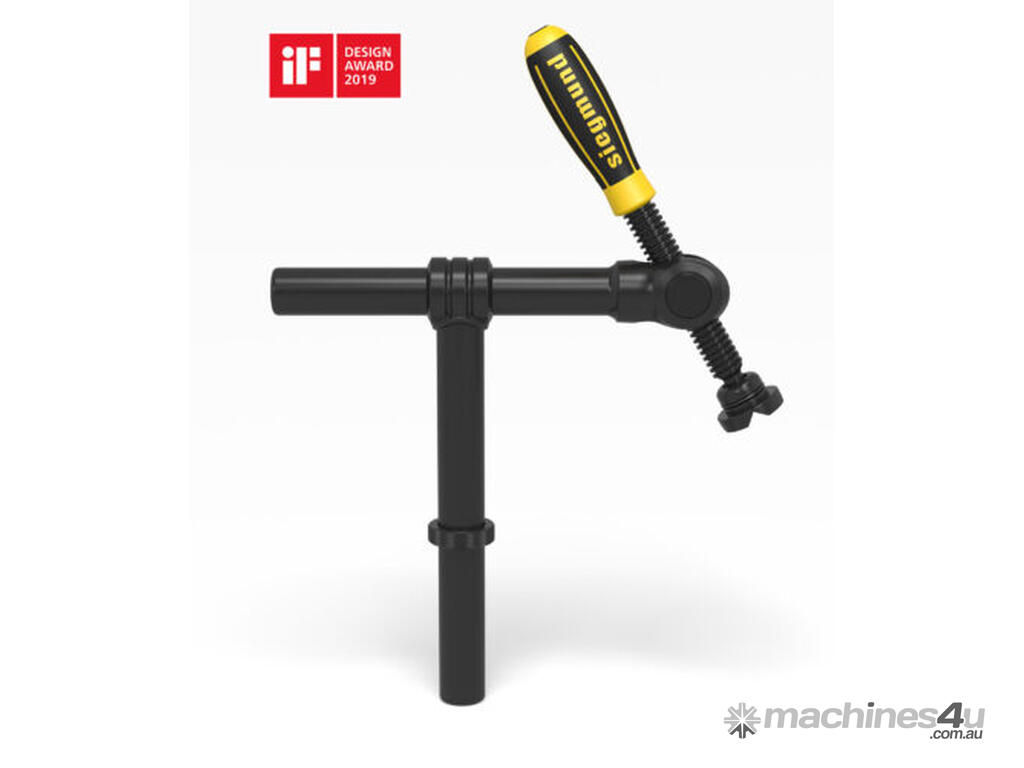 The horizontal round tube with a length of 200 mm is fully adjustable and creates, combined with the swiveling arbor, a variable clamping range. The length of the vertical pipe is 250 mm.
