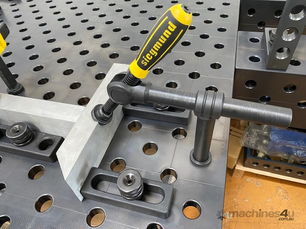 Pipe Clamp Universal, with swiveling Arbor enables flexible clamping at a + / – 42 degree angle. This Pipe Clamp combines the advantages of conventional 45° or 90° clamps. It can be used at an angle as well as straight, resulting in additional clamping options and a more variable clamping range.