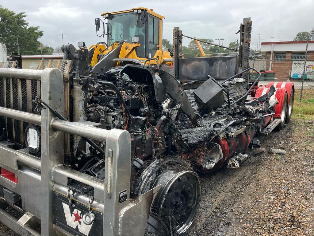 No C/P,Western Star,Prime Mover,Unknown,airbags,Odometer not visible,Hourmeter not visible,Rego. No: NP(XP07DU), Unregistered NSW,VIN: 0004110,Sold with No Plates,WOVR Status: WOVR N/A,Incident Type: Fire