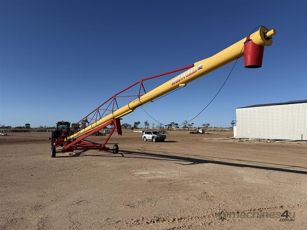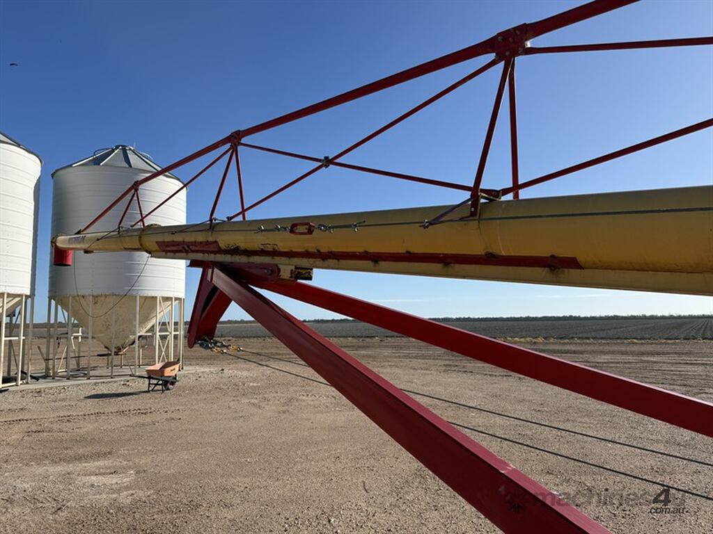 Westfield MKX130-84 Swing Away Grain Auger. 13 inch by 84 foot swing away auger, PTO drive, hydraulic lift, winch out swing away. Item is a part of a major ag reduction sale Located at Mungindi.