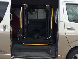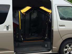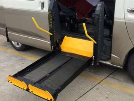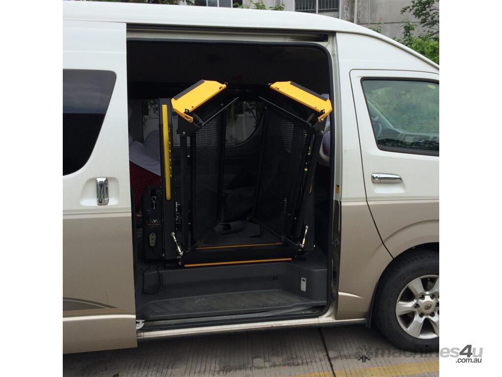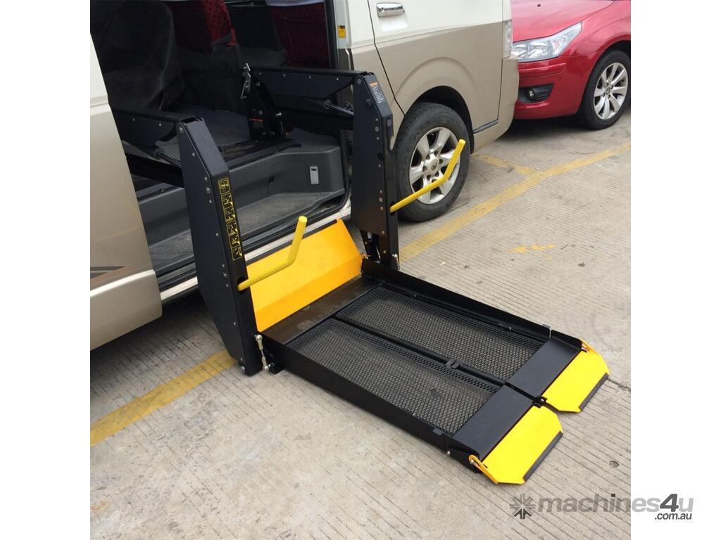 This wheelchair lift can be installed at the rear door or side door. Powered by hydraulic system, the movement of lifting, lowering and folding are fully automatic. This lift is operated by a wired remote control .