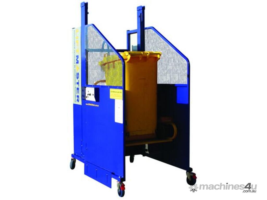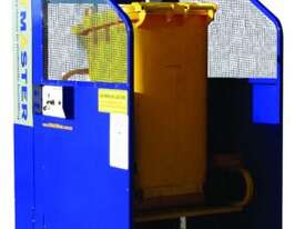 The machine operates by pressing a button, making it easy to use and reducing the effort required to lift and tip the bin.