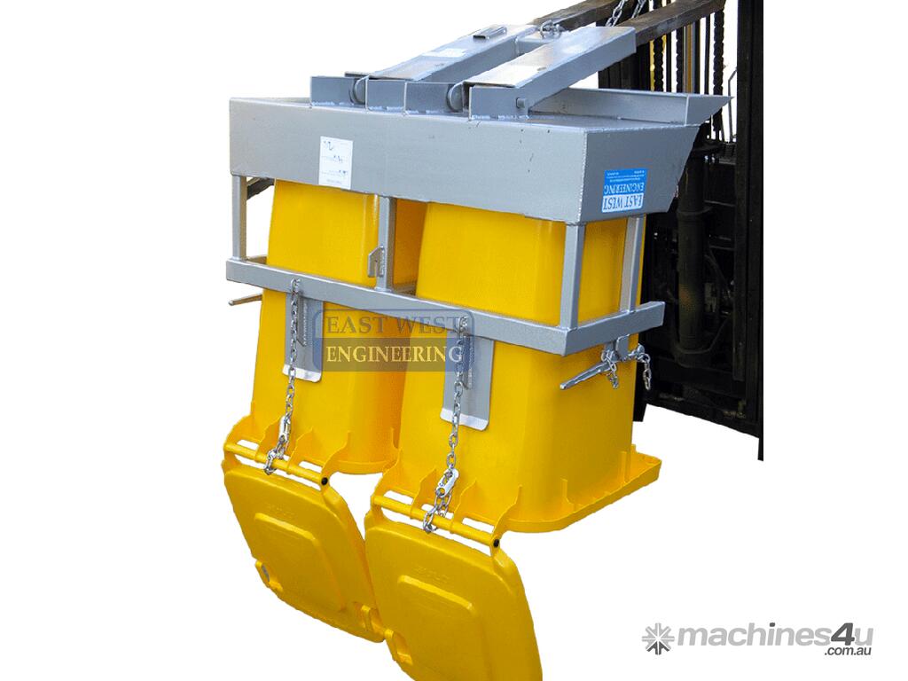 Wheelie Bin Tipper is a forklift attachment that allows for safe and easy tipping of wheelie bins into larger containers.