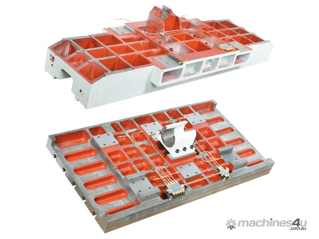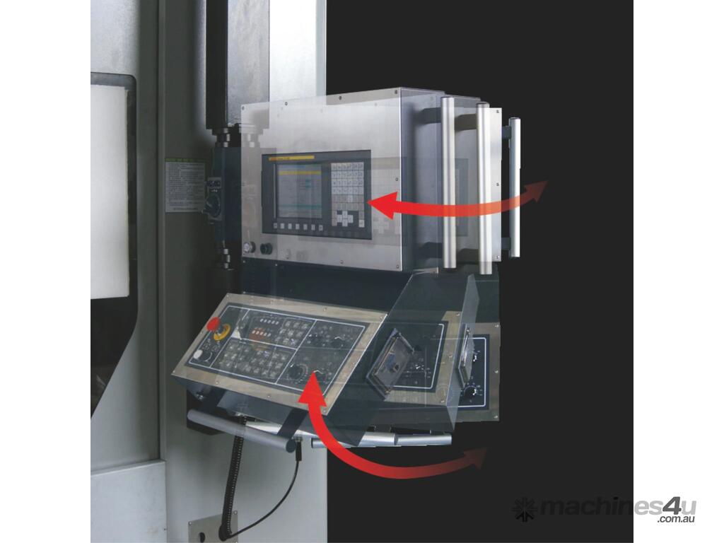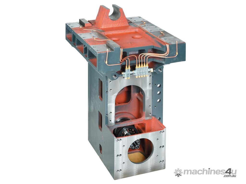 Spindle & Z-Axis: Has a low-speed, high-torque wide-range spindle motor option. The Z-axis uses a servo motor brake system and two cylinders for counter-balance to achieve high performance.