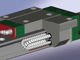 Guideways: The X, Y, and Z axes use heavy-loading 55mm "6x8x6" slide blocks and cross roller-type linear guideways. The 2000 models specifically use NSK roller-type slide blocks on the Y-axis for increased machine stability and precision.