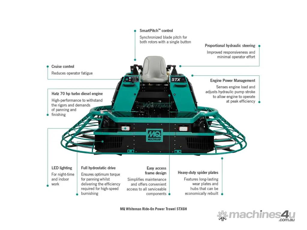 -> Six blade spider assemblies assure the flattest floors possible with 33% more blade contact.