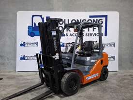 2011 Toyota 8FG25, 2.5 Tonne LPG with a 3-stage container mast with lifting capacity of 4.5m. Fitted with side shift, in-build digital scale and good solid tyres
