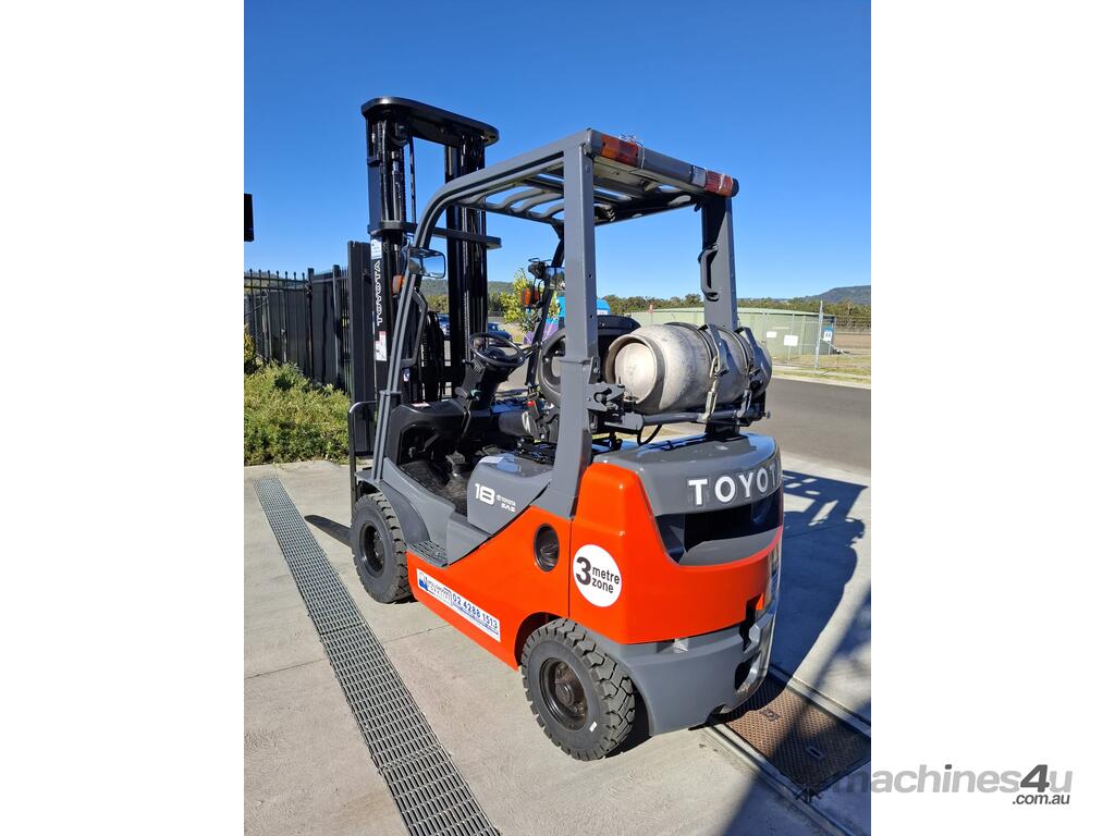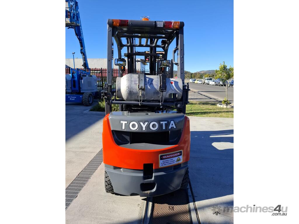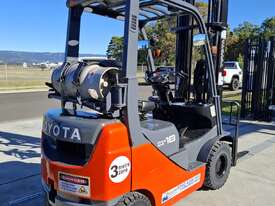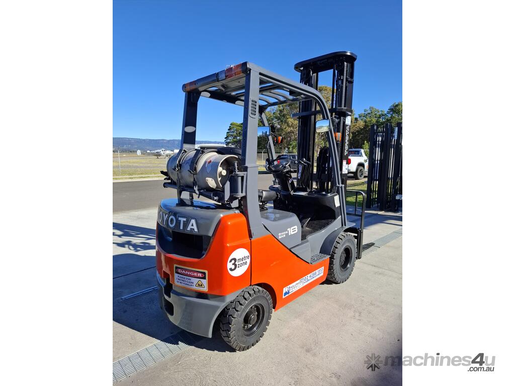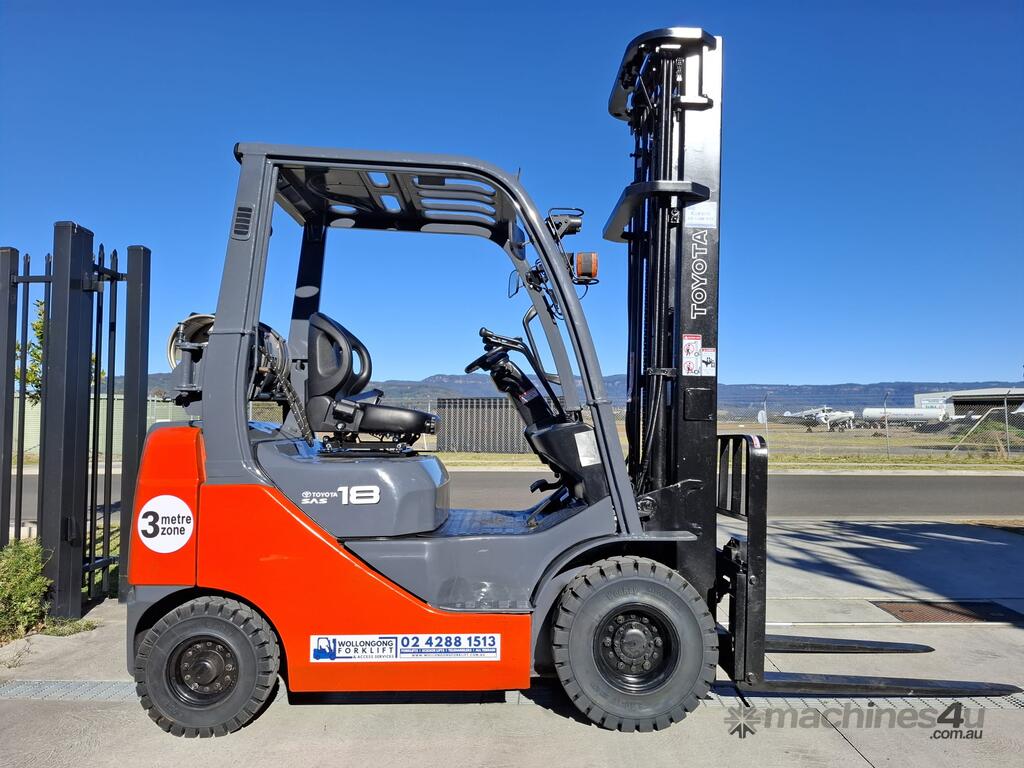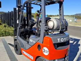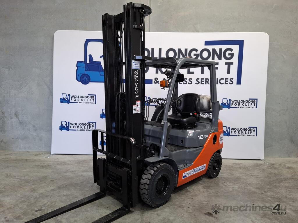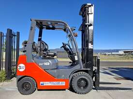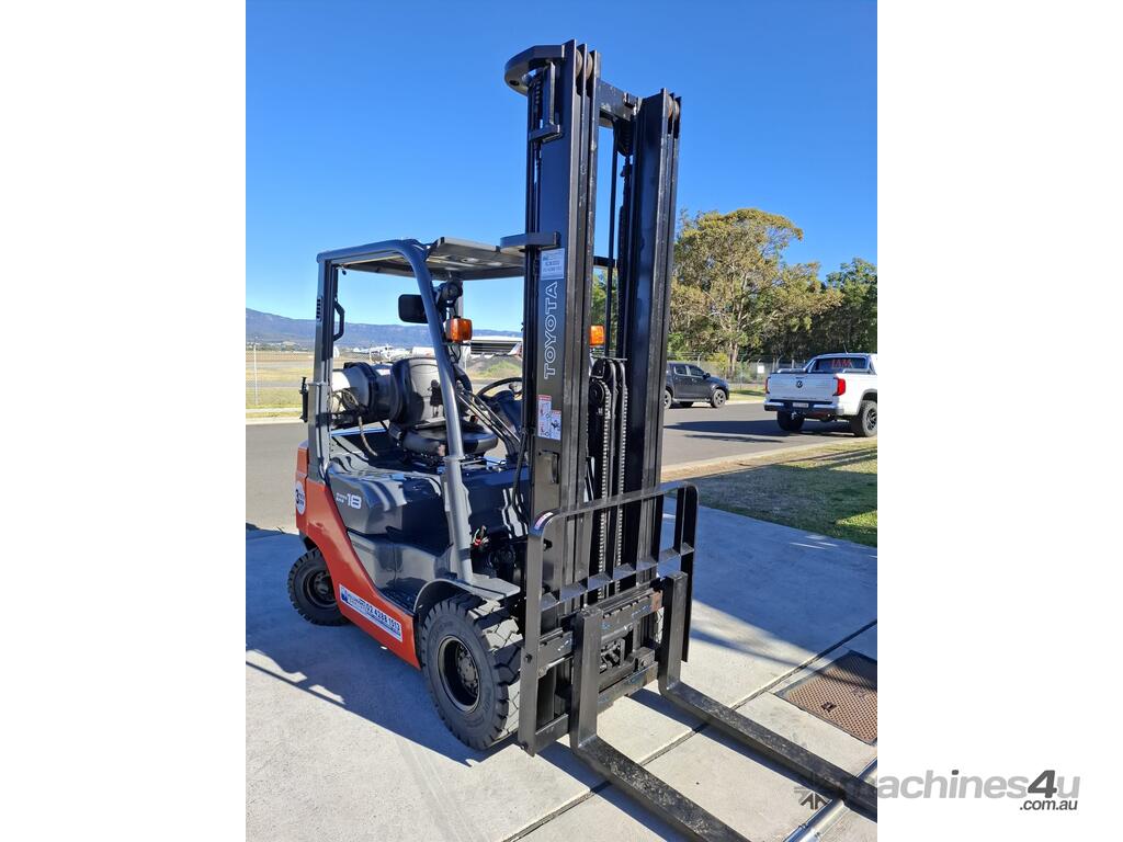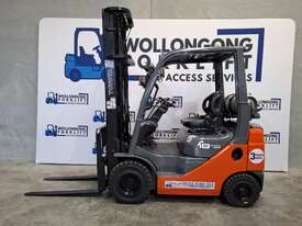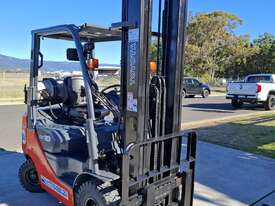 2016 Toyota 8FG18, 1.8 Tonne LPG with a 3-stage container mast with a very desirable lifting capacity of 6m. Fitted with side shift and good solid tyres.