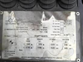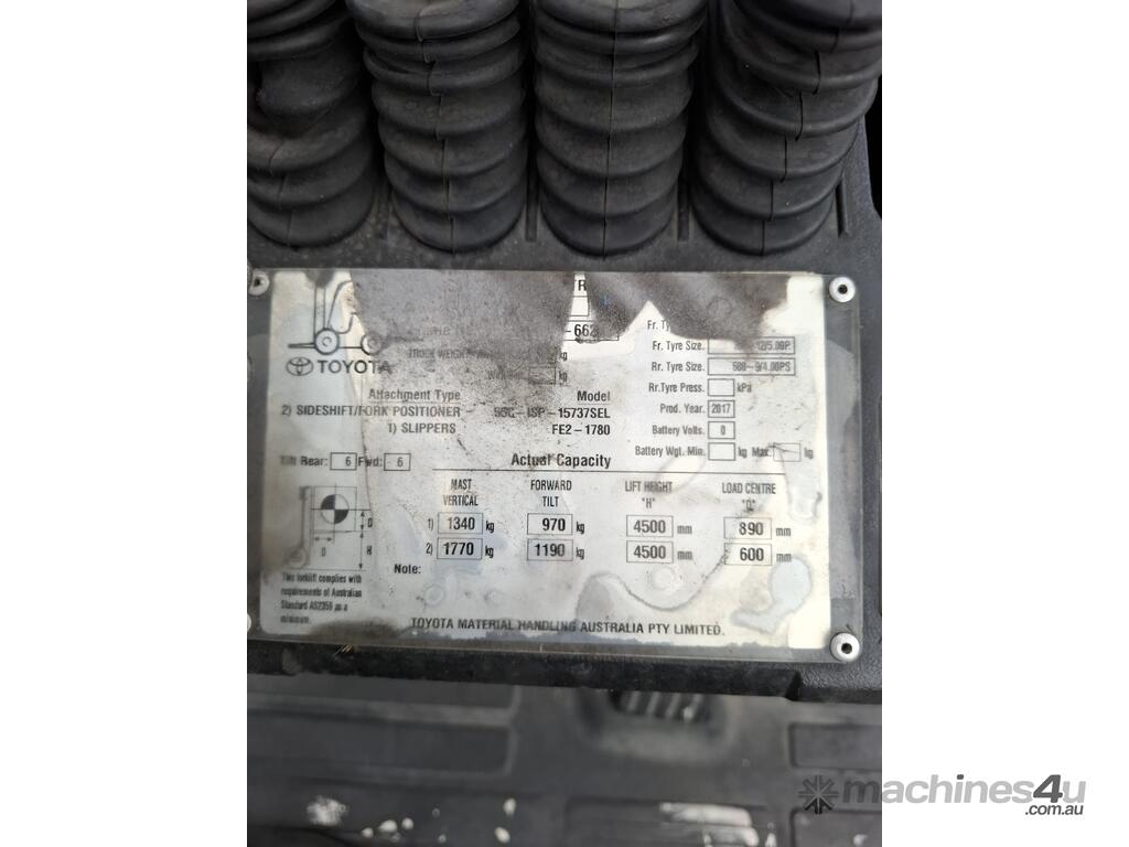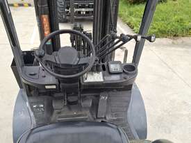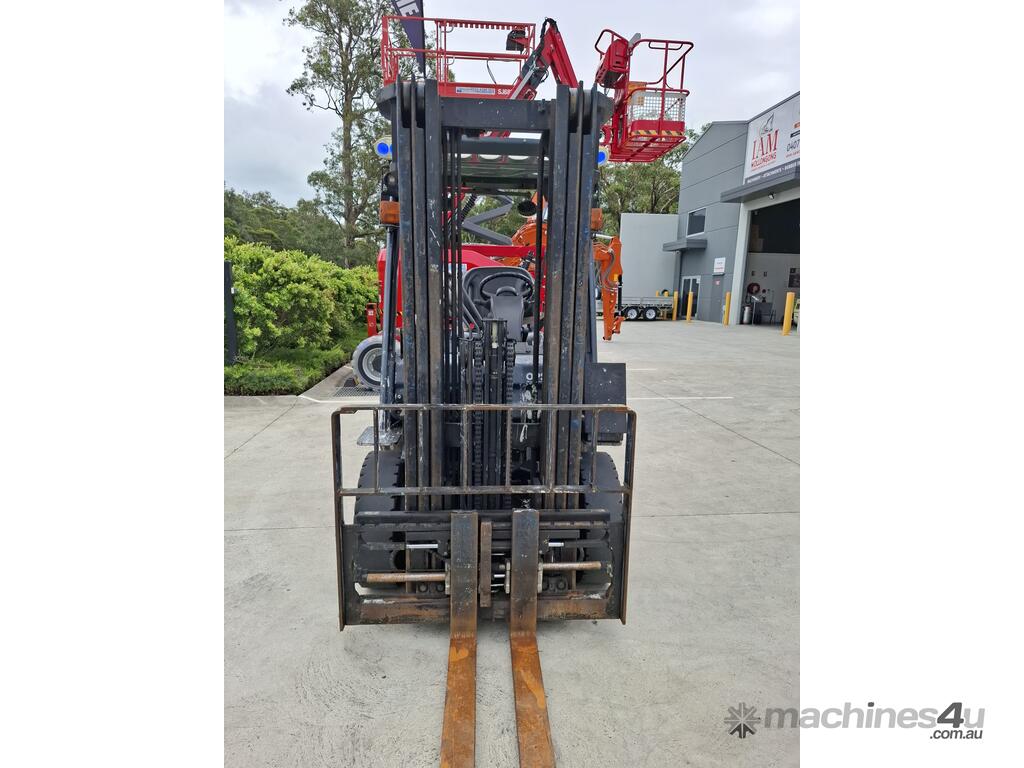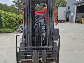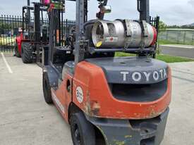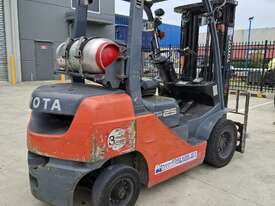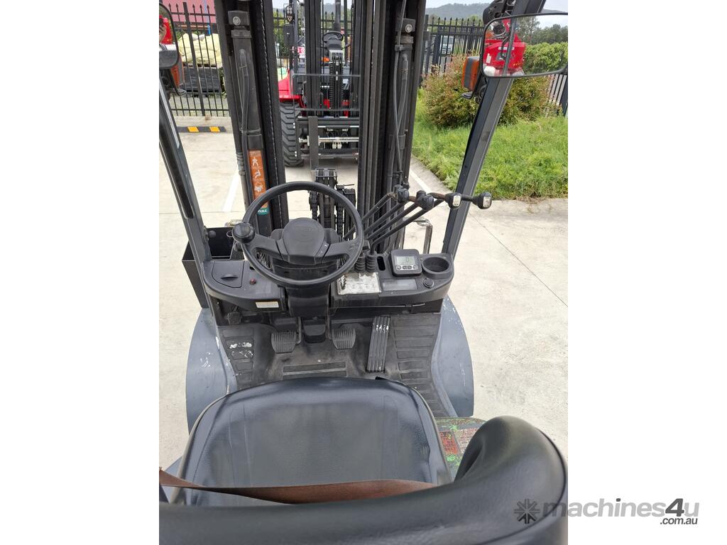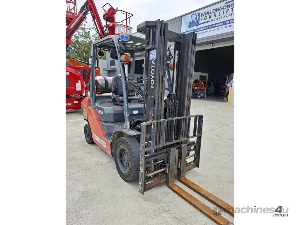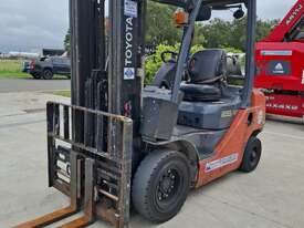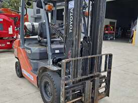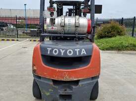 2017 Toyota 8FG25, 2.5 Tonne LPG with a 3-stage container mast with lifting capacity of 4.5m. Fitted with side shift, fork positioners and blue safety lights.