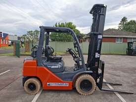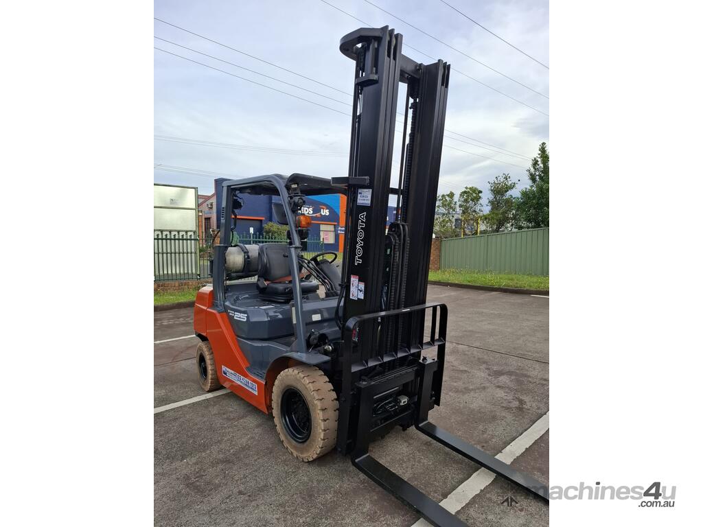 2018 Toyota 8FG25, 2.5 Tonne LPG with a 3-stage standard mast with desirable lifting capacity of 6m. Fitted with side shift, in-build digital scale and good non-marking solid tyres.