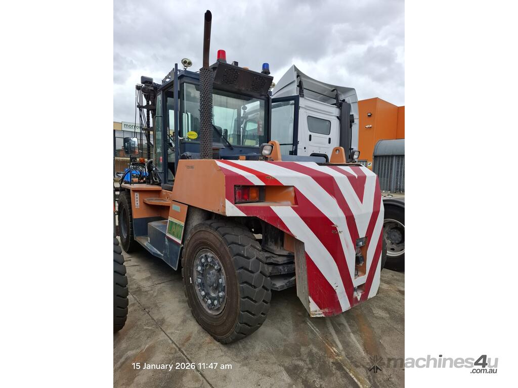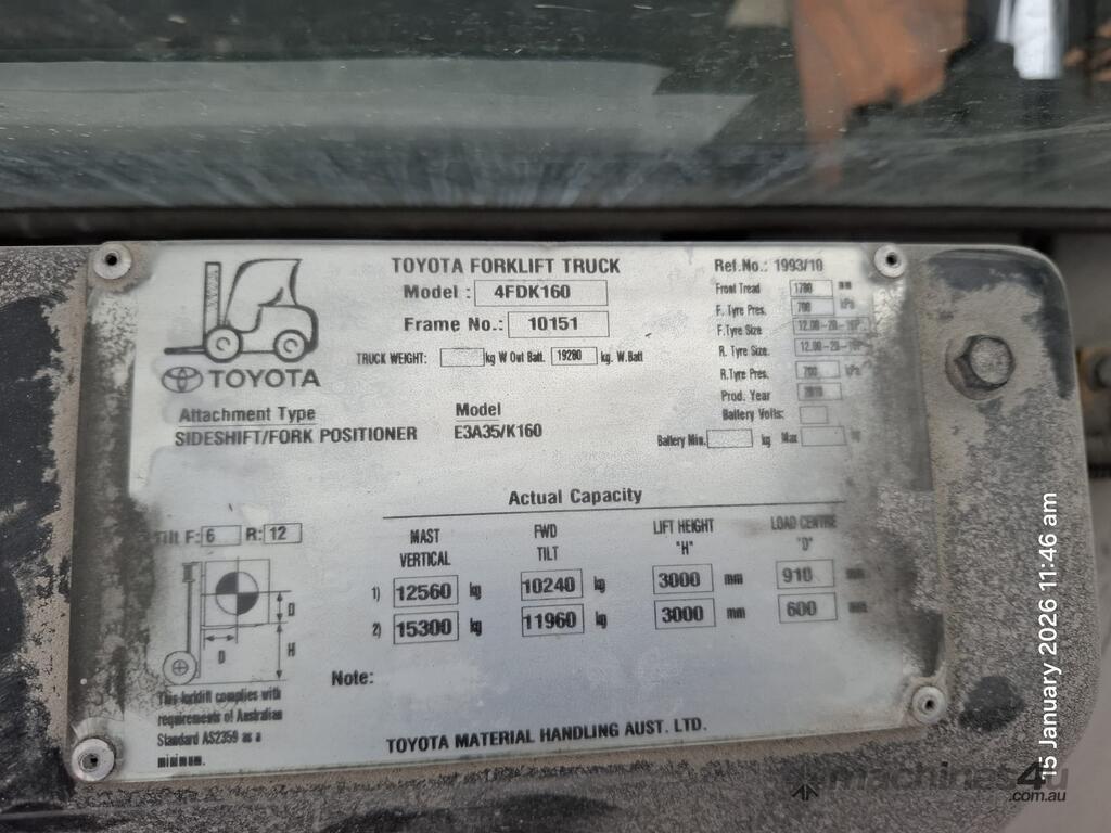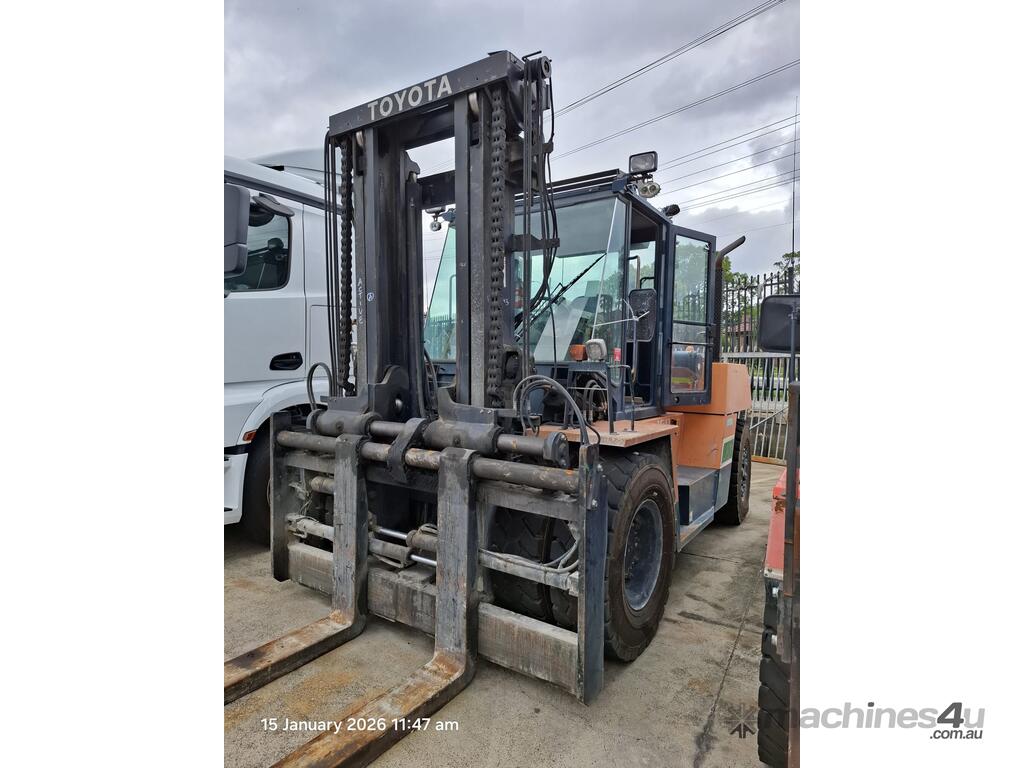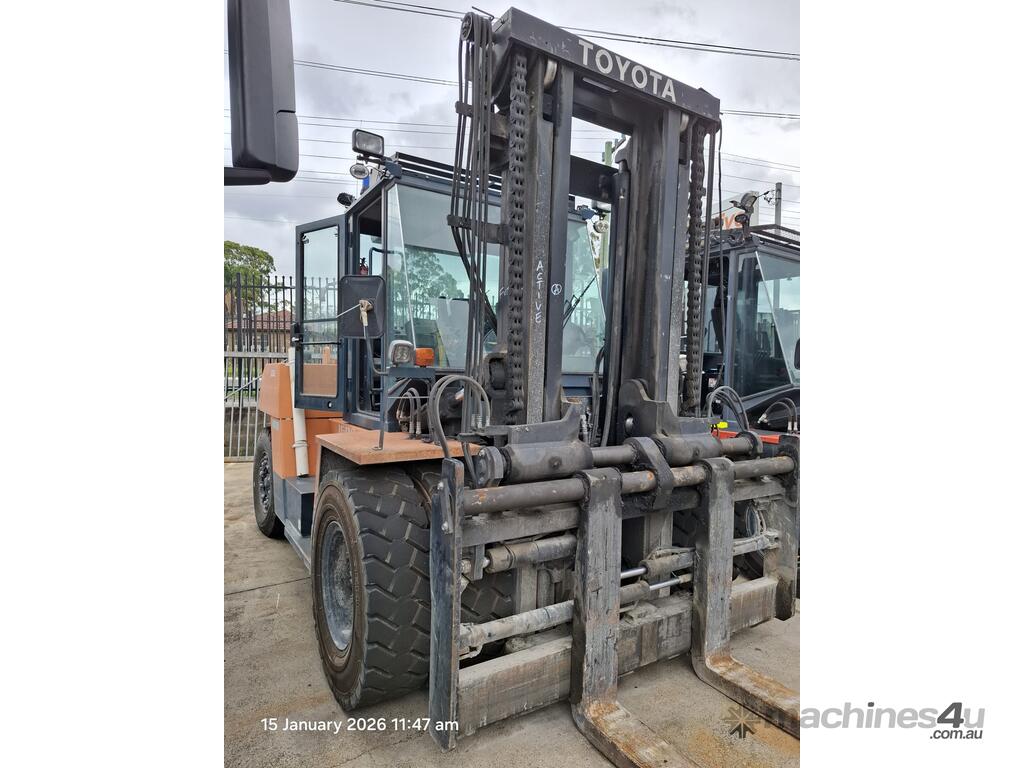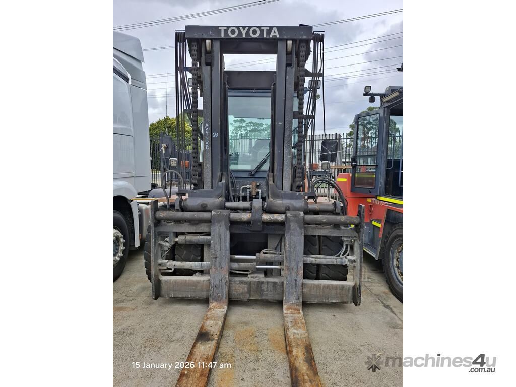 Toyota 4FG160, 16 Tonne diesel with a 2-stage container mast with lifting capacity of 3m.