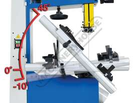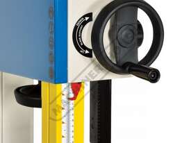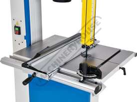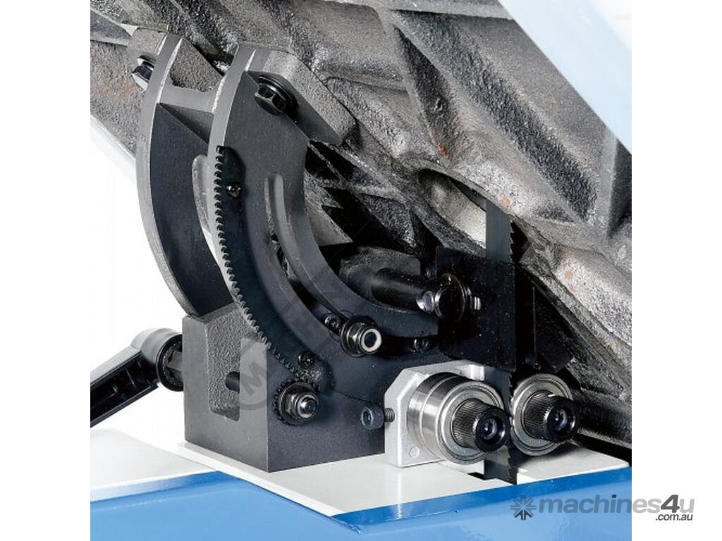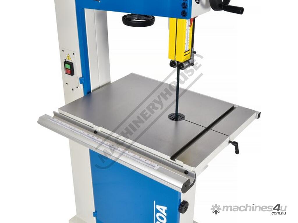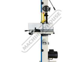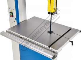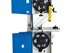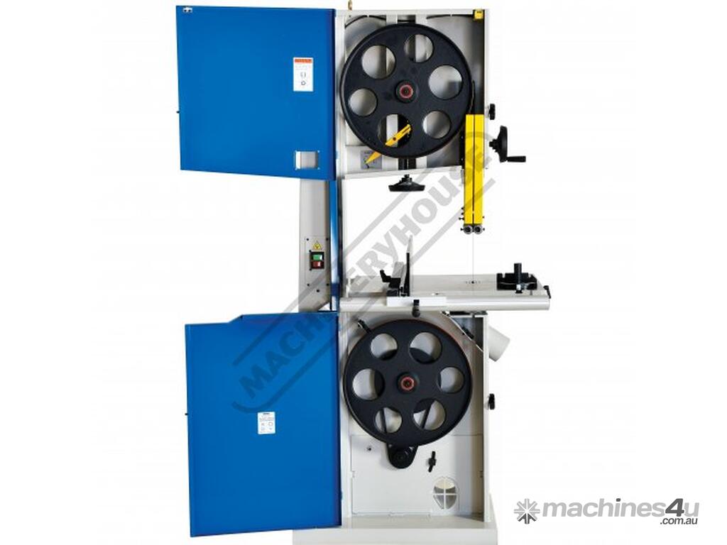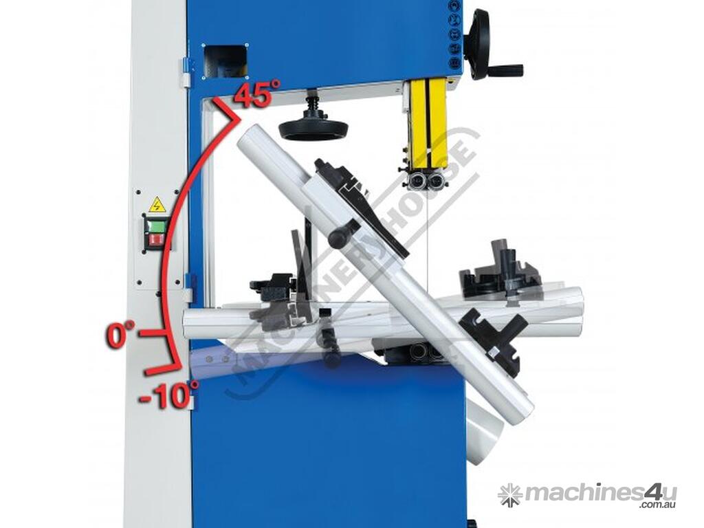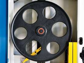 Worm gear systems incorporated for both table tilting and blade guidepost movement are used for quick & easy adjustment. Another very important feature that is also often forgotten is that the machine offers cast iron blade wheels that are balanced for smooth running and helps eliminate excessive vibration.