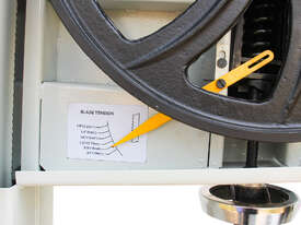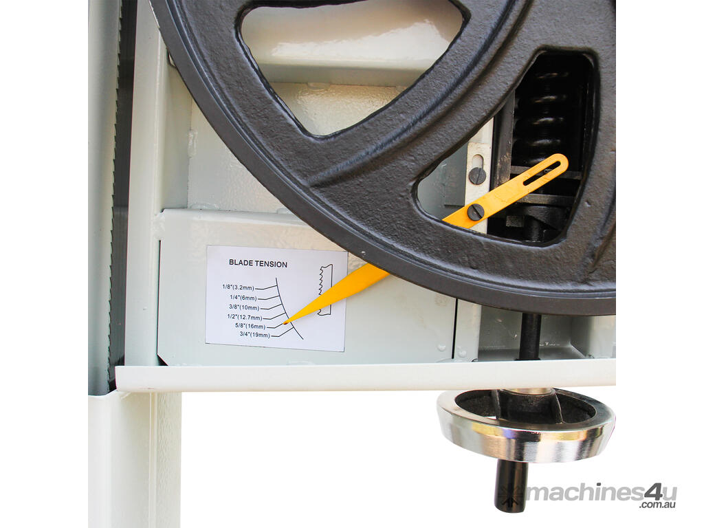 The heavy-duty woodworking bandsaw features massive, thick cast-iron wheels that are perfectly balanced for reduced vibration and a strong flywheel effect, ensuring smoother, more powerful cuts. It is powered by a robust single-phase 2.2 kW motor (240V/50Hz, compatible with Australian power), delivering reliable performance for demanding tasks.