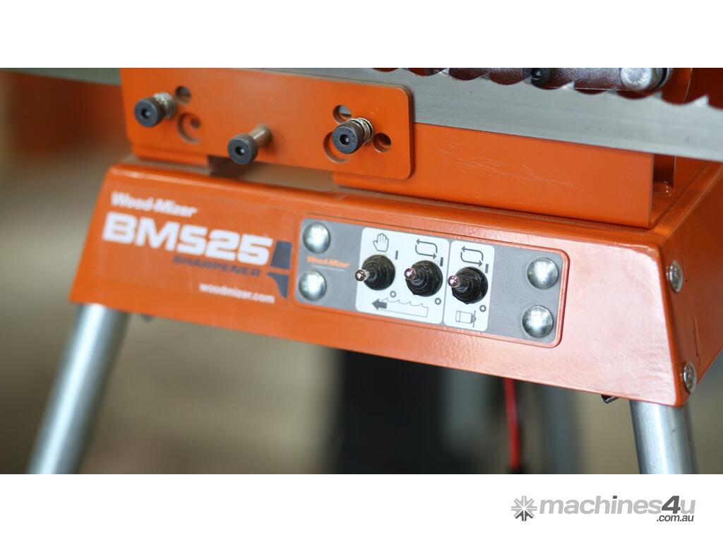 Designed for hobbyists and sawyers in rural areas, the BMS25 runs on a 12V battery and is able to sharpen a variety of blade profiles at a rate of 30 teeth per minute.