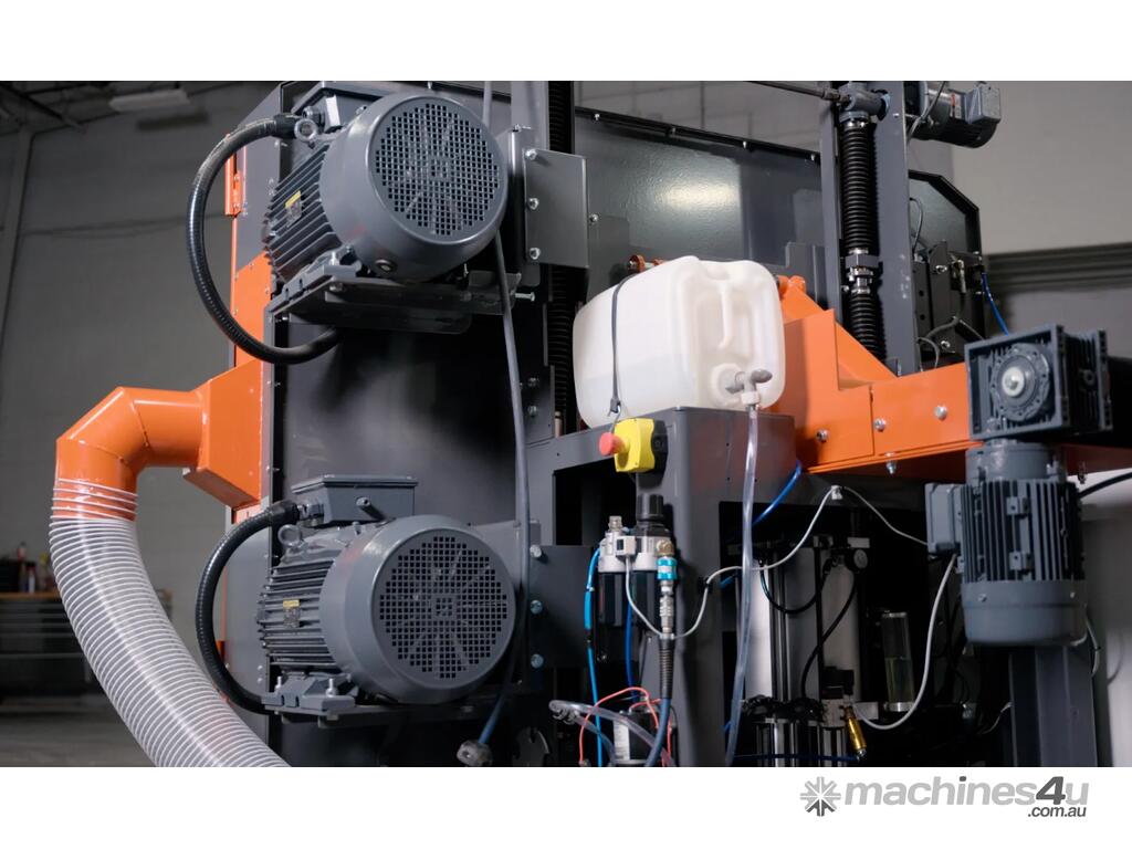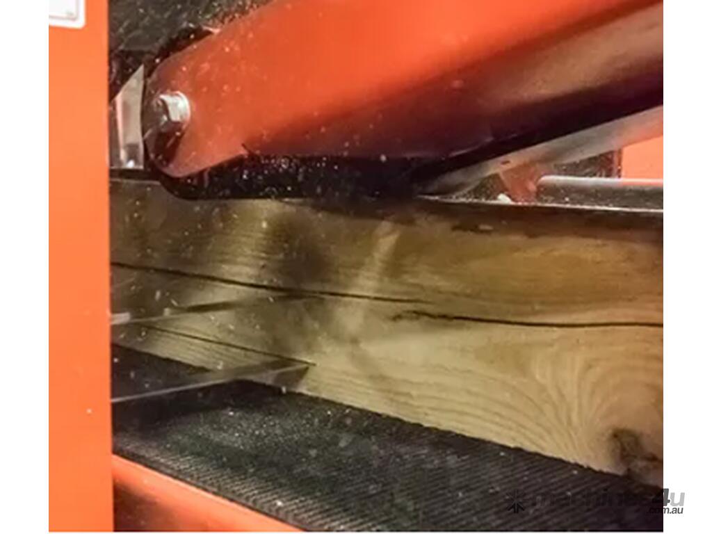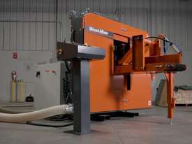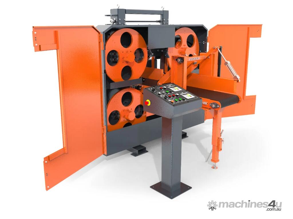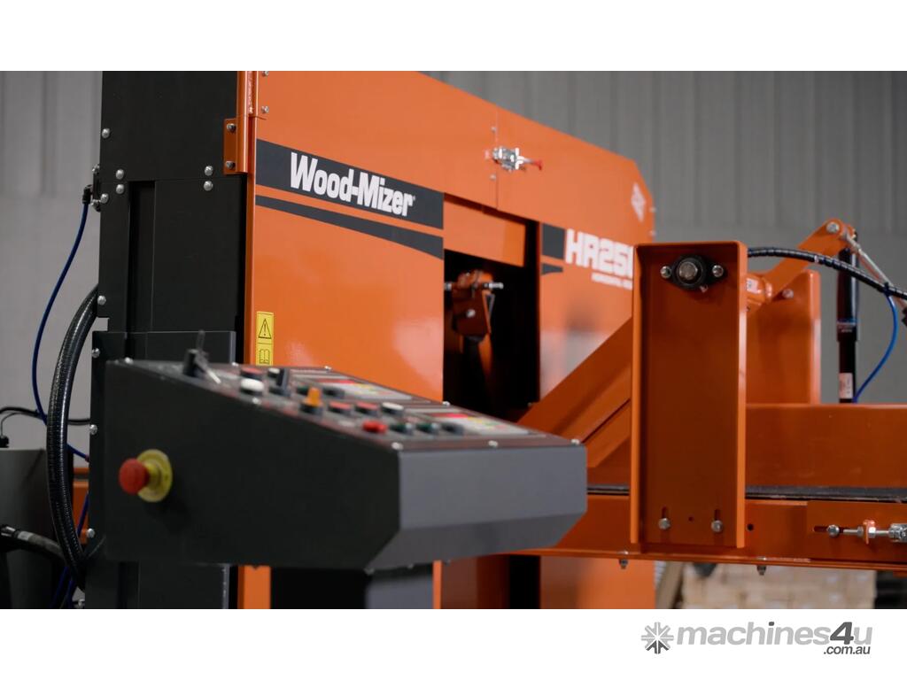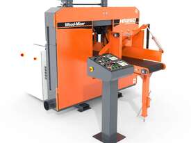 Designed for high-production lumber and pallet board operations, the HR250 features two horizontal bandsaw blades within one compact head which is ideal for resawing cants, boards, or reclaimed material into two or three pieces with each pass. Powered by two 25HP (18kW) saw wheel motors and two 2HP (.75kW) gear box motors, the HR250 is built to last with heavy-duty construction, premium components, and 28" (710mm) diameter dynamically balanced steel band wheels.