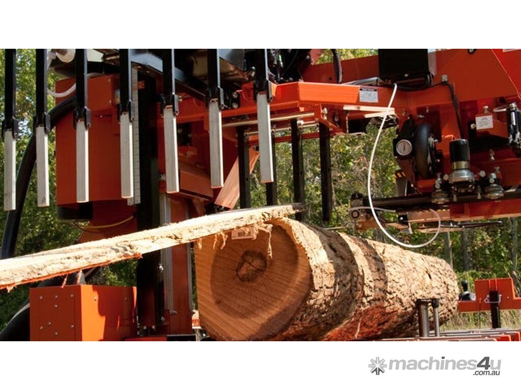 Logs are secured onto the bed by four side supports (two hydraulically controlled vertical supports) and a heavy-duty hydraulic log clamp that uses a special two-plane clamping system for simplifying sawing of stressed logs