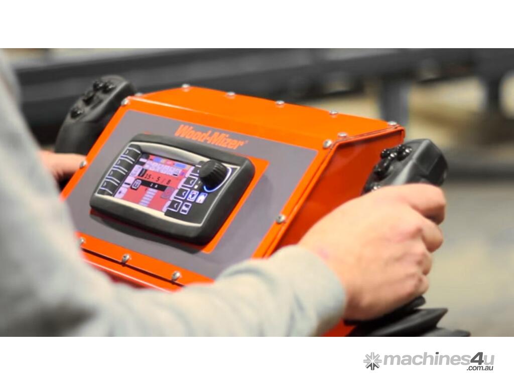 Two multi-function joysticks control all head and bed functions of the sawmill including side supports, log clamp, log turner, toeboards, blade guide arm, and debarker. Can also control additional accessories such as log decks and incline conveyors.