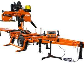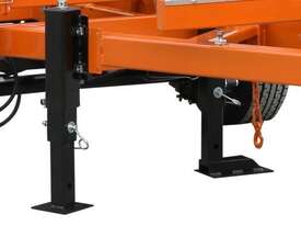 The LT70 Super Hydraulic is our fastest portable sawmill ever and is engineered for sawyers that demand high production from a portable sawmill every single day. The LT70 Super Hydraulic is fully-loaded with engine-powered hydraulic log handling and head controls, pedestal remote control station with joystick controls, deluxe board return with outfeed table, debarker, and LubeMizer blade lubrication. The sawmill is completely portable and ready for road travel with a standard single axle trailer and electric brakes. Six fine-adjust outriggers allow for quick set-up and precise leveling of the bed prior to sawing. The patented open side of the sawhead allows for minimal leveling during set-up, easy off-bearing with the trapezoid shaped bed, and sawing of odd shaped logs.