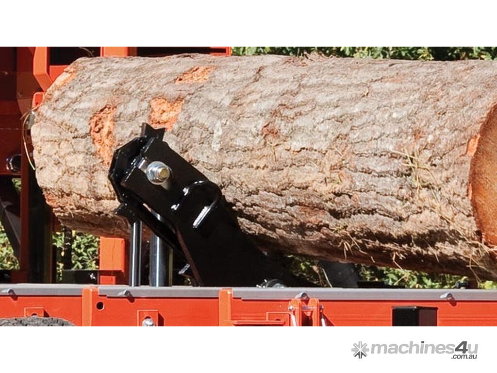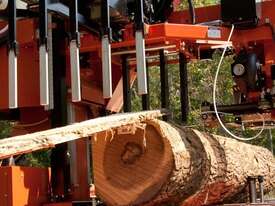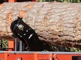 Logs are secured onto the bed by four side supports (two hydraulically controlled vertical supports) and a heavy-duty hydraulic log clamp that uses a special two-plane clamping system for simplifying sawing of stressed logs