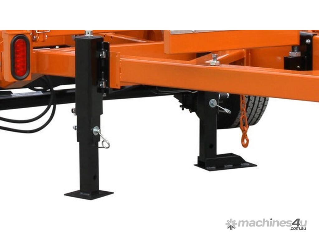 Logs are easily loaded onto the sawmill bed by hydraulically controlled loading arms. Each arm features a self-leveling, heavy-duty cylinder