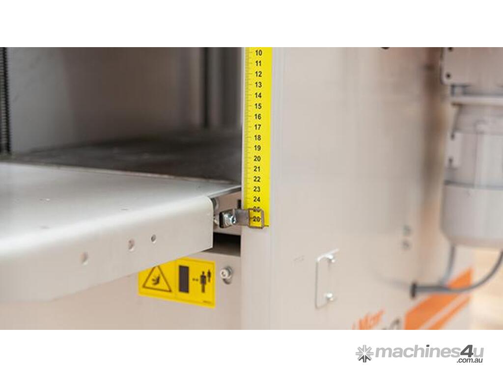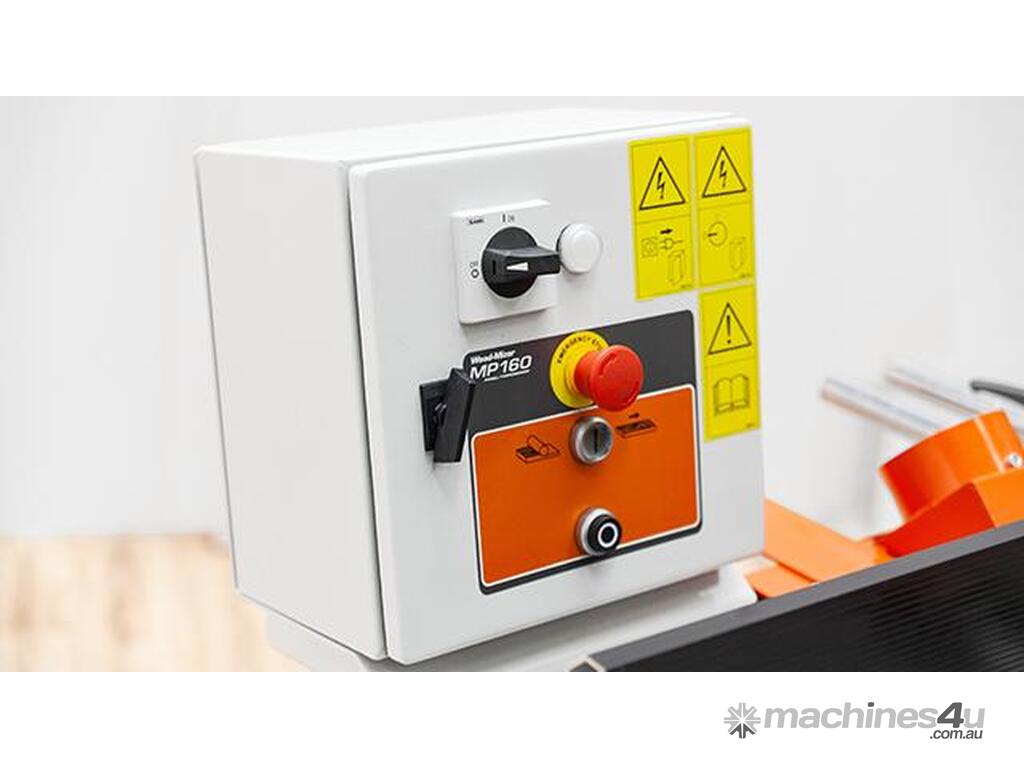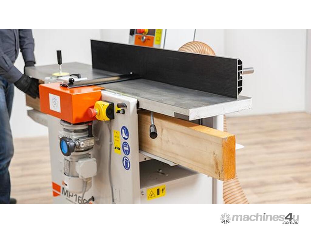 The MP160 efficiently shares one horizontal cutter between two cast iron tables – the upper table for jointing (planing) and the lower table for planing (thicknessing). No alterations are needed to switch between jointing (planing) and planing (thicknessing) – switch between the two functions easily without stopping the cutter or extractor. You start by using the top table for jointing (planing) – making two adjoining sides perfectly flat and at a precise right angle to each other. You manually advance the board over the cutter by hand. Then you use the bottom table for planing (thicknessing) the last two sides to be parallel to the first two, thicknessing the board to its final dimensions.