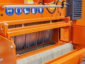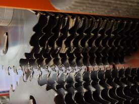With a cutting capacity of up to 650 mm in width and 250 mm in thickness, and the ability to accommodate up to 32 blades (16 per shaft), the MR250 is tailored for aggressive production environments. Material alignment is supported by a side fence and laser sight, with options to add up to three lasers for enhanced accuracy. For increased safety, the MR250 multirip features anti-kickback fingers, a limit bar with an emergency switch, and manual override options in case of material jams.