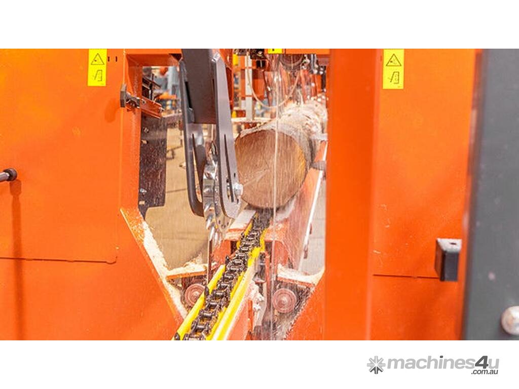 The TVS (Twin Vertical Saw) uses thin-kerf blades to efficiently remove the two vertical sides of logs up to 400mm in diameter.