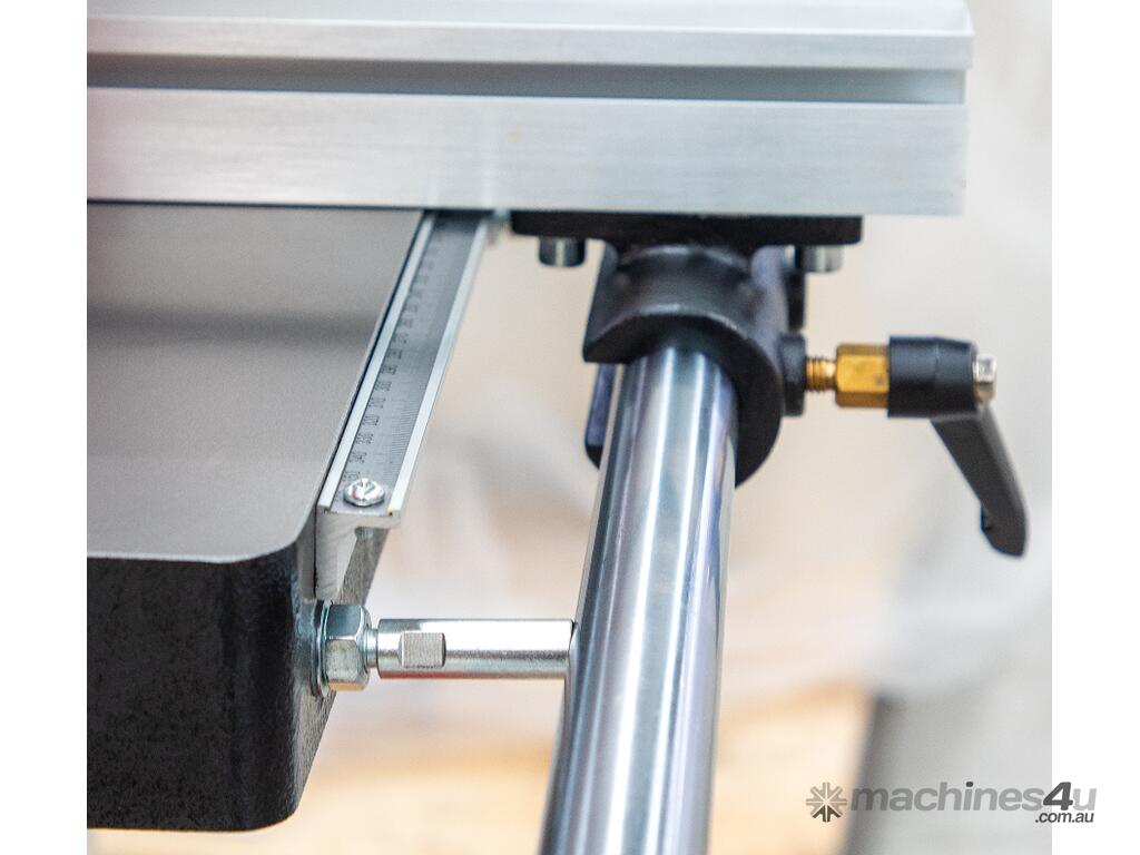 Engineered with a solid cast iron bandwheel and a dependable dual support tension system, it’s built to withstand the forces needed for tensioning wide blades. Boasting industrial blade guides, quick blade tension with an indicator, an easy drift fence, and a gear-driven tilting table, it offers a solid foundation for stability with oversize casting trunnions. With options like the European Industrial Roller Blade Guide and the Miter Gauge, the BS510B merges precision and power for unmatched